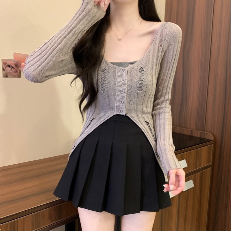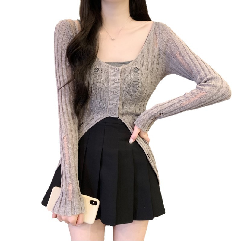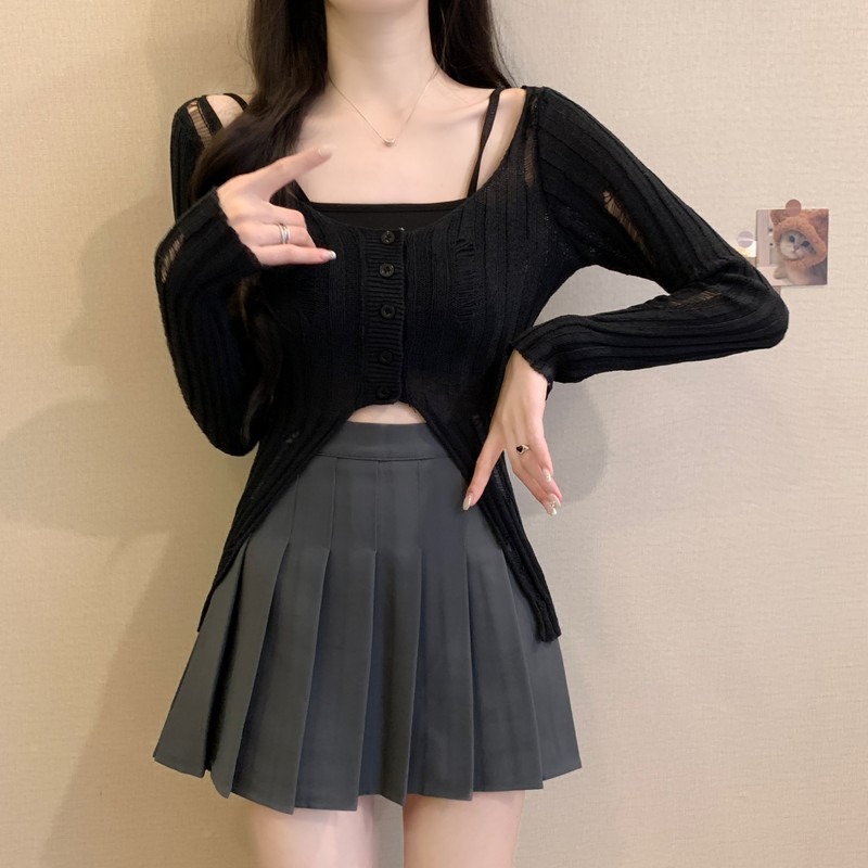 | nameOriginal | Knitted Top Hollow Hole Sunscreen Women's Wear Thin Sling Outer Hollow Blouse Air-conditioning Shirt Design Short |