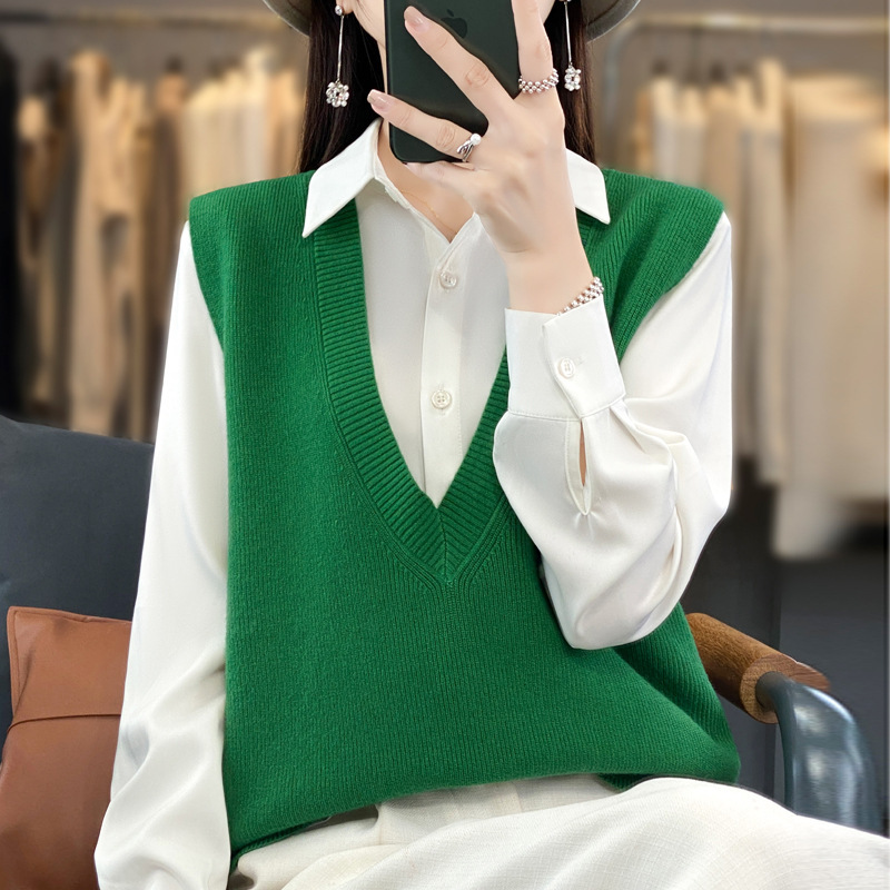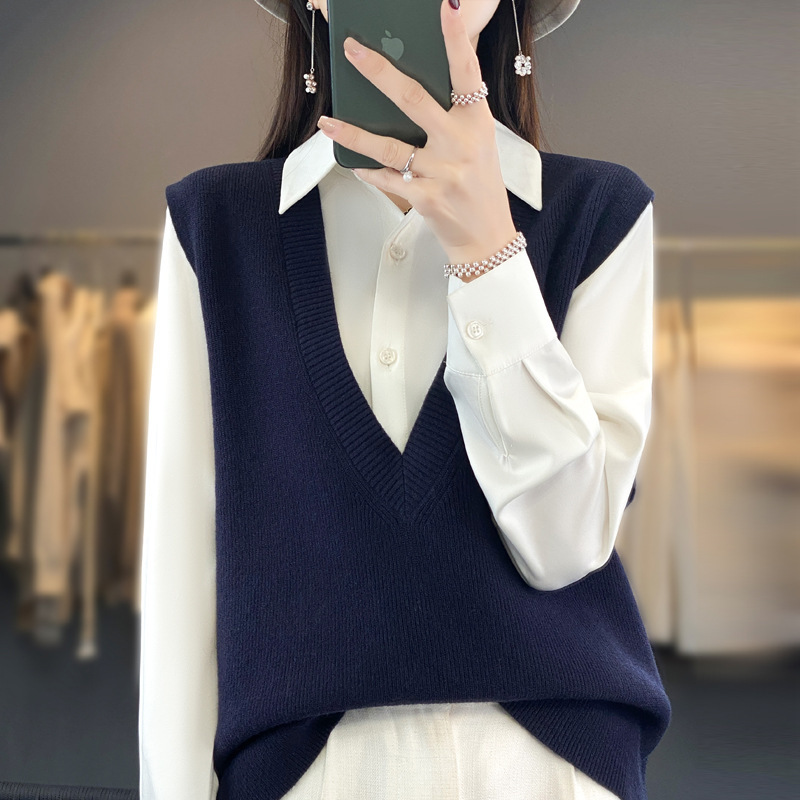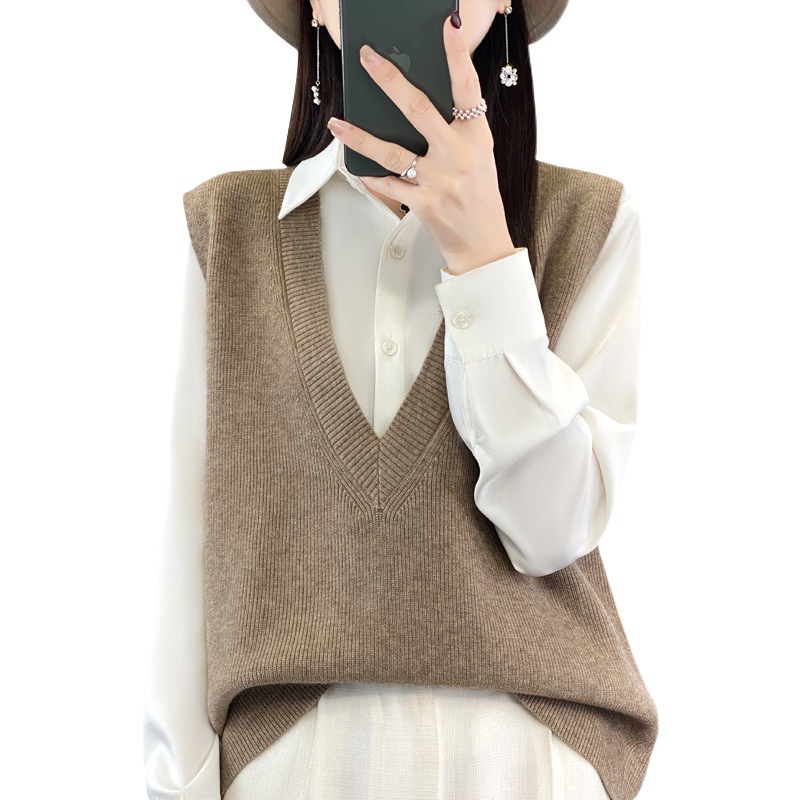 | nameOriginal | Knitted Vest Korean Women's Casual Collar Knitted Vest with Shirt 2023 New Loose Pullover Vest |