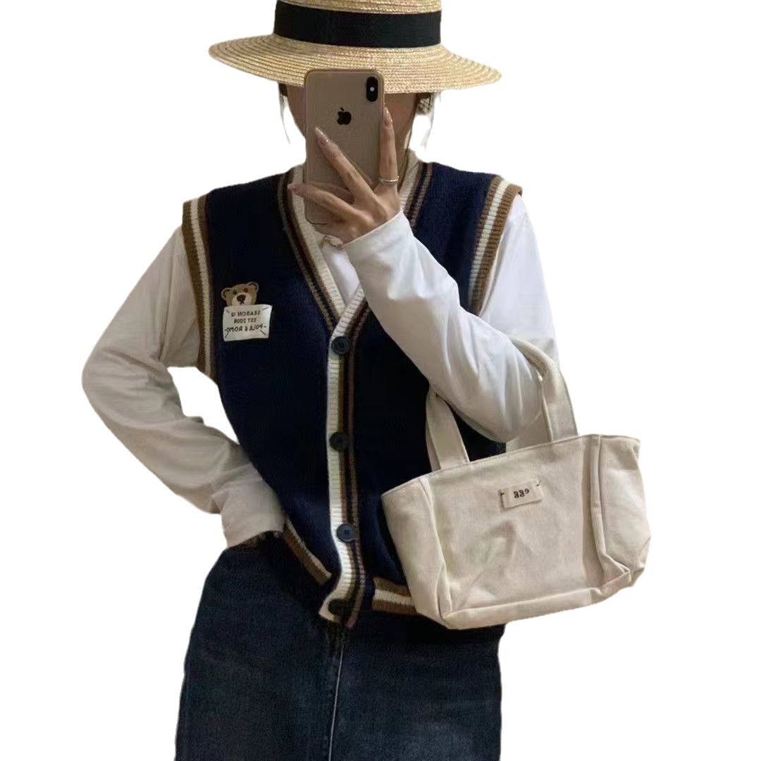 | nameOriginal | Knitted Vest Vest Academic Style V-Neck Sleeveless Loose Color Matching Lazy Style Cartoon Spring and Autumn New Style |
