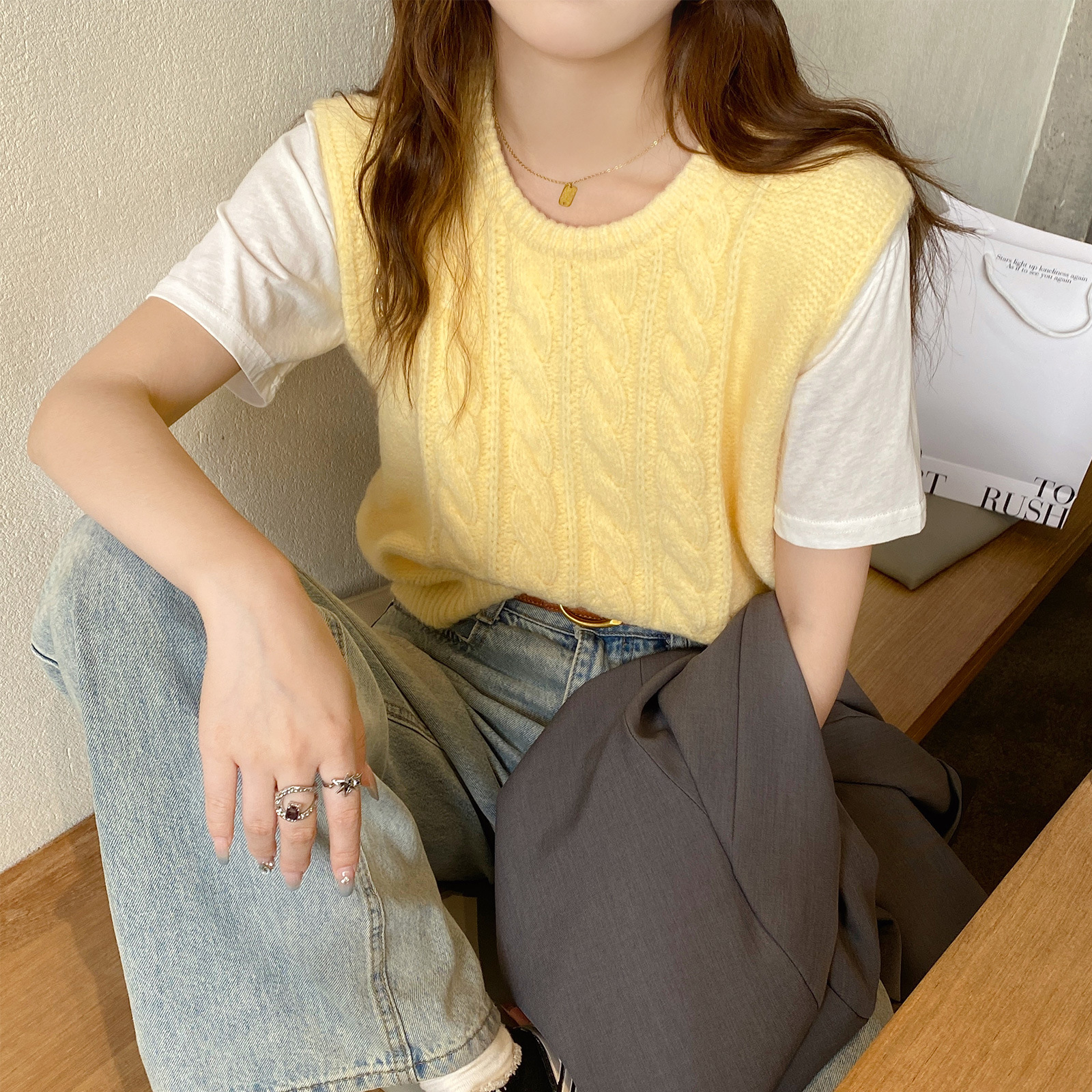 | nameOriginal | Knitted Vest Women's 2024 New Autumn Wear Retro Loose Lazy Style Sleeveless Stacked-up Outer Wearing Waistcoat |