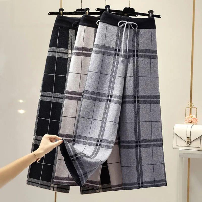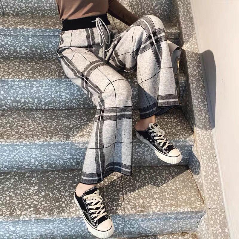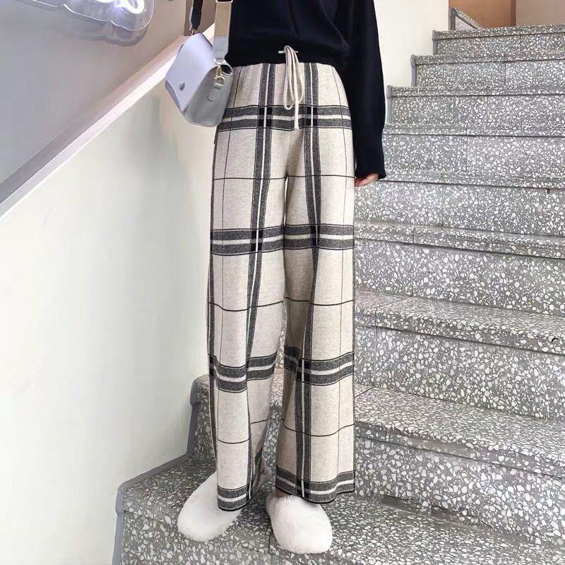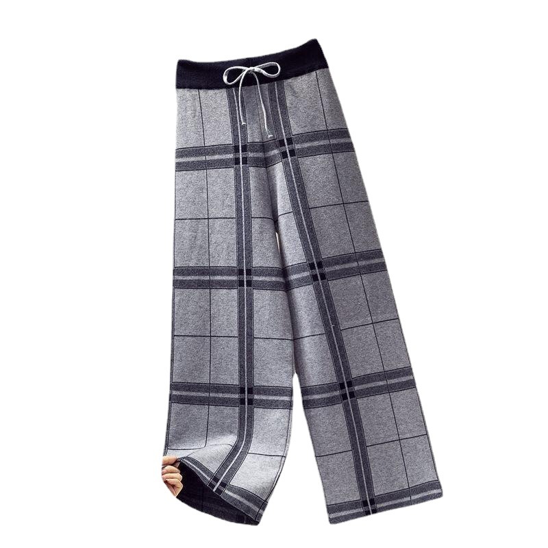| nameOriginal | Knitted Wide-leg Pants Women's Autumn and Winter High Waist Straight Loose Thickened Outer Wear Retro Casual Dagging Black and White Plaid Pants |