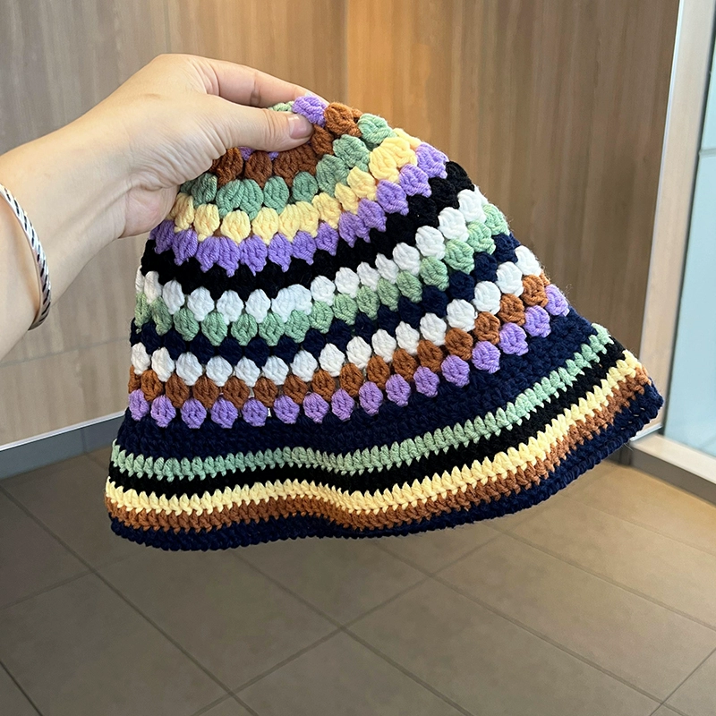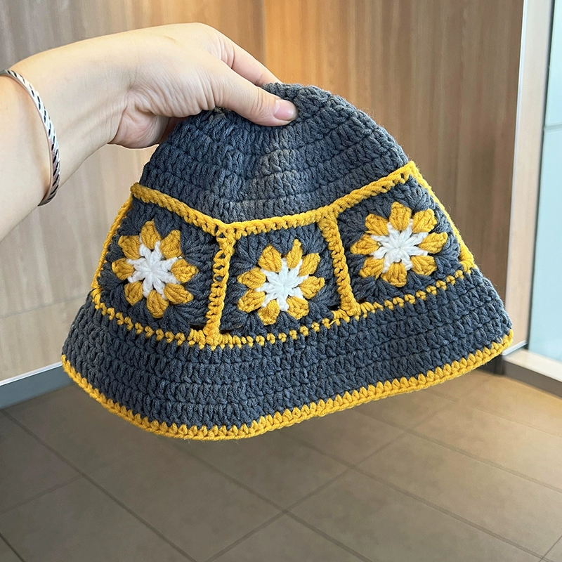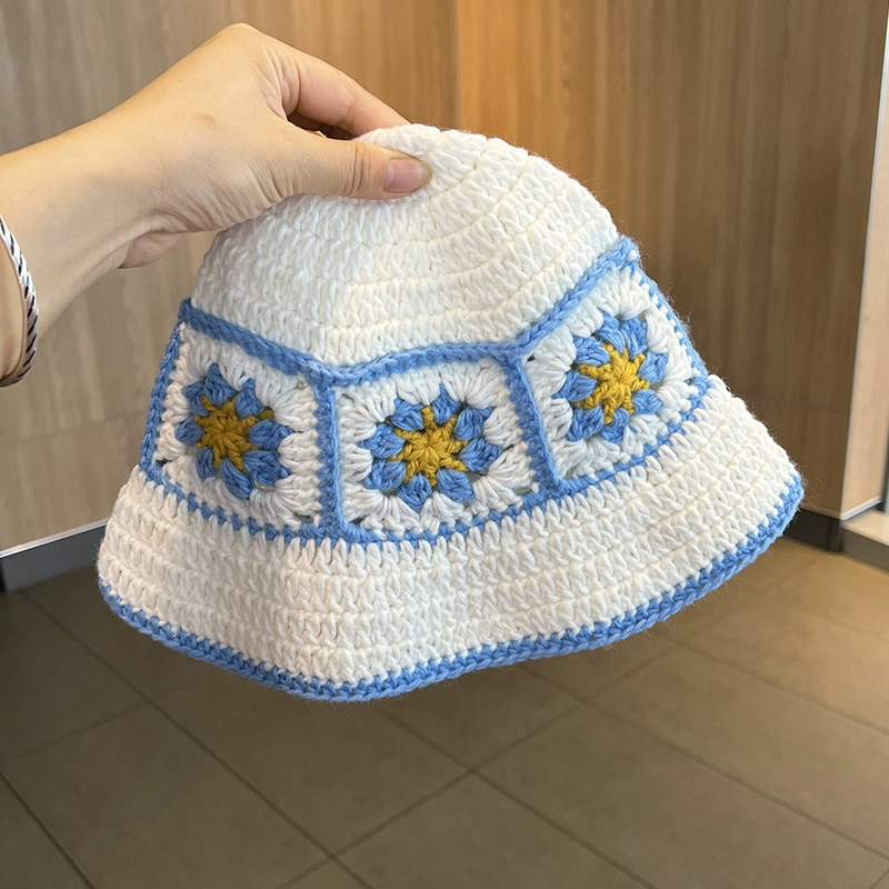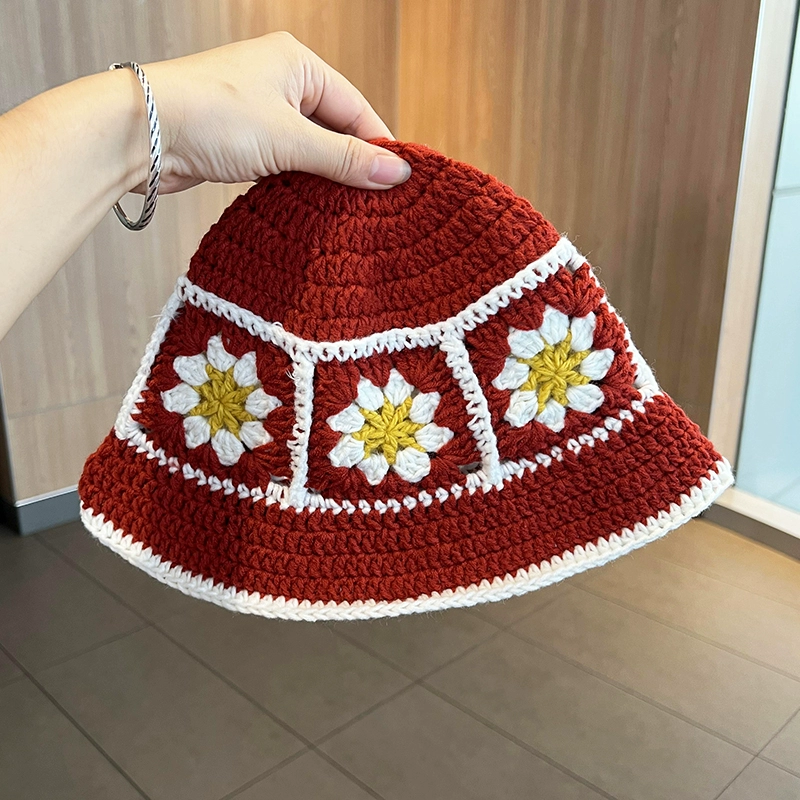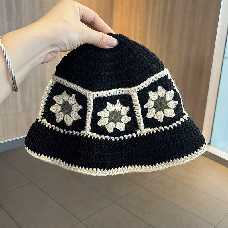 | nameOriginal | Knitted woolen hat for women in autumn and winter retro flower knitted basin hat showing face small hollow breathable ethnic style fisherman hat |