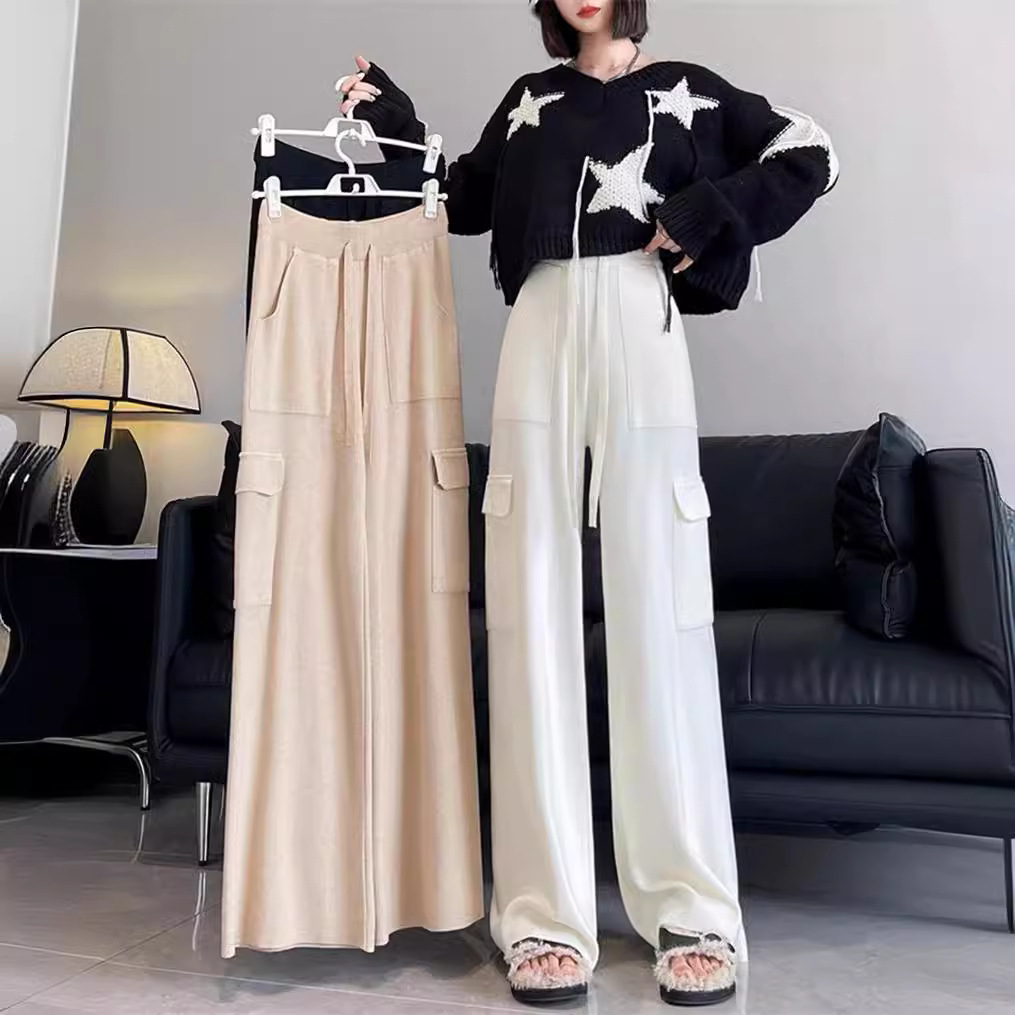| nameOriginal | Knitted Workwear Wide Leg Pants Women's 2024 Autumn and Winter New High Waist Dummy Slimming Sports Straight Casual Pants Women's Trendy |
