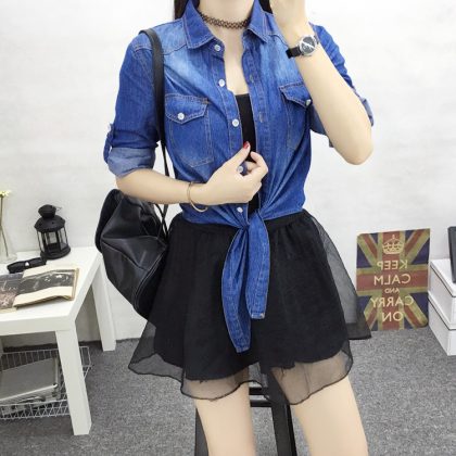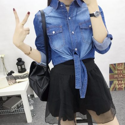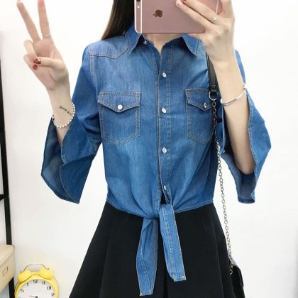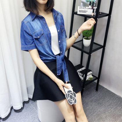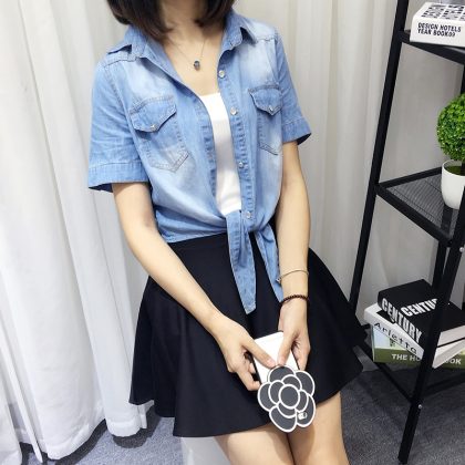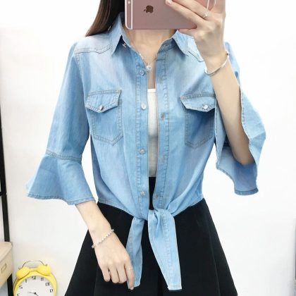 | nameOriginal | Knot Denim Coat Women's Thin Short-sleeved Small Shawl Spring and Summer 2024 New Outfit Short plus size Shirt Waistcoat |