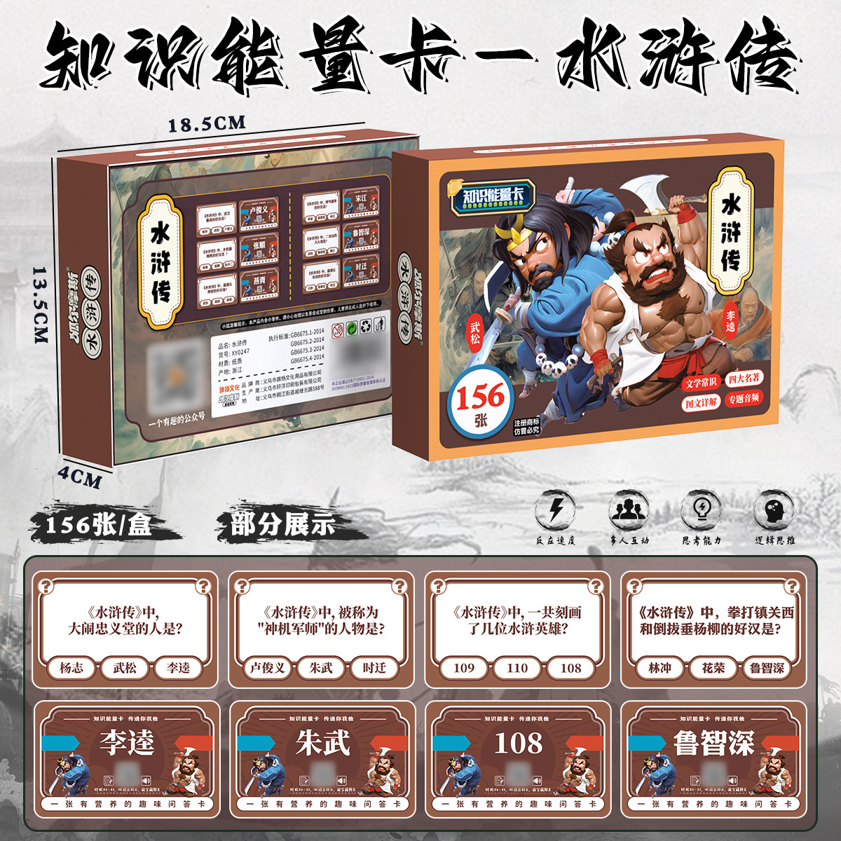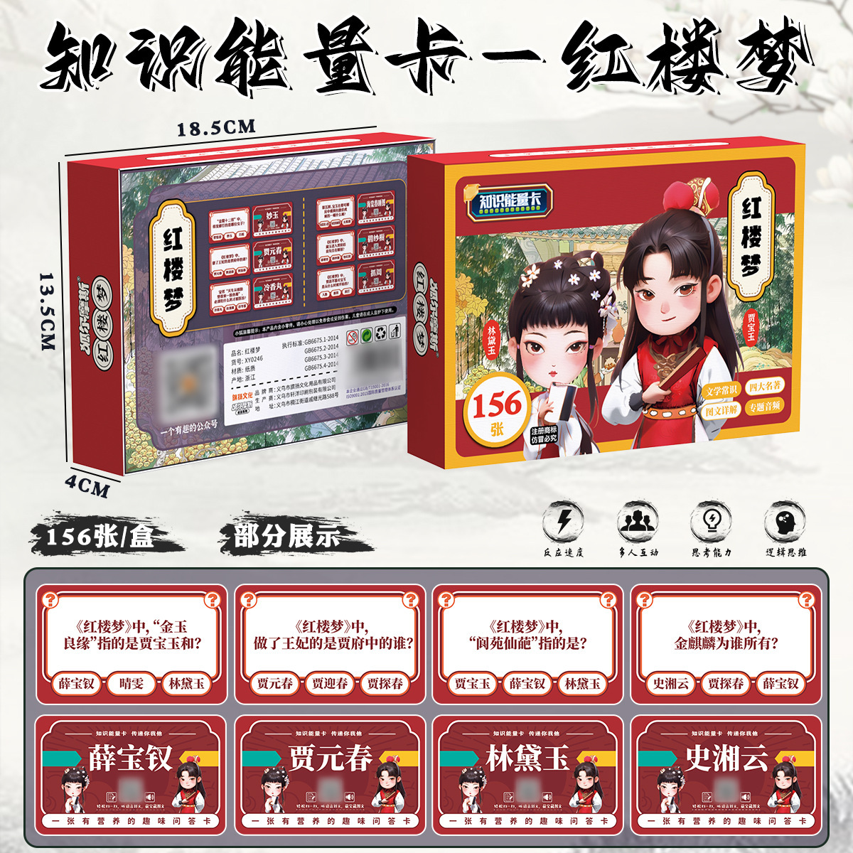 | nameOriginal | Knowledge energy card journey to the West Romance of the Three Kingdoms Water Margin Dream of Red Mansions parent-child student party interactive Q & A card |