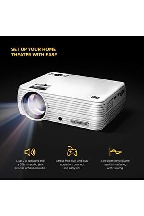 AMAZING big screen performance/ Mini Home Projector Is Slightly Larger Than Similar Compact Projectors and Delivers Surprisingly Sharp Images and Truthful Colors with 800x480p Natural Resolution [Full 1080p HD Support], 2500:1 Contrast and 16:9 Aspect Ratio/ View All Your Favorite Media Inside, Outdoor-Anywhere!