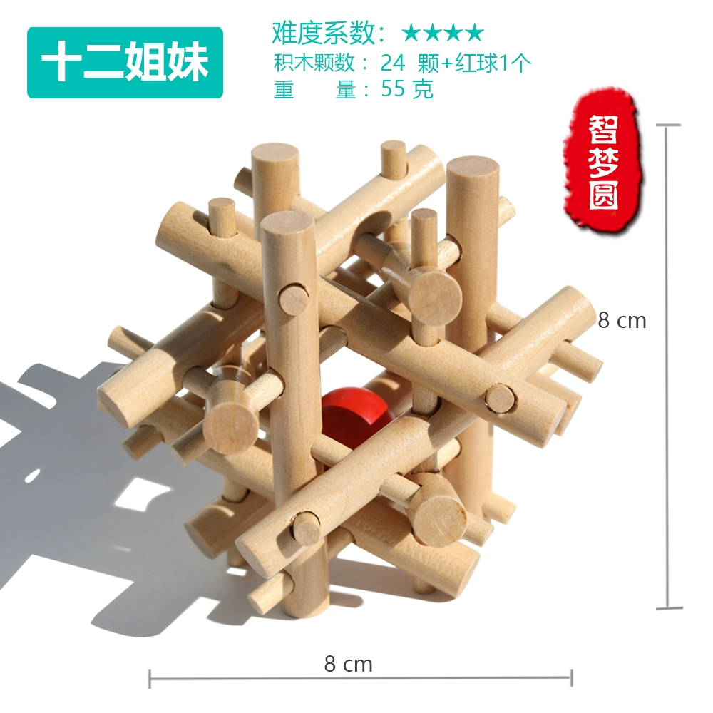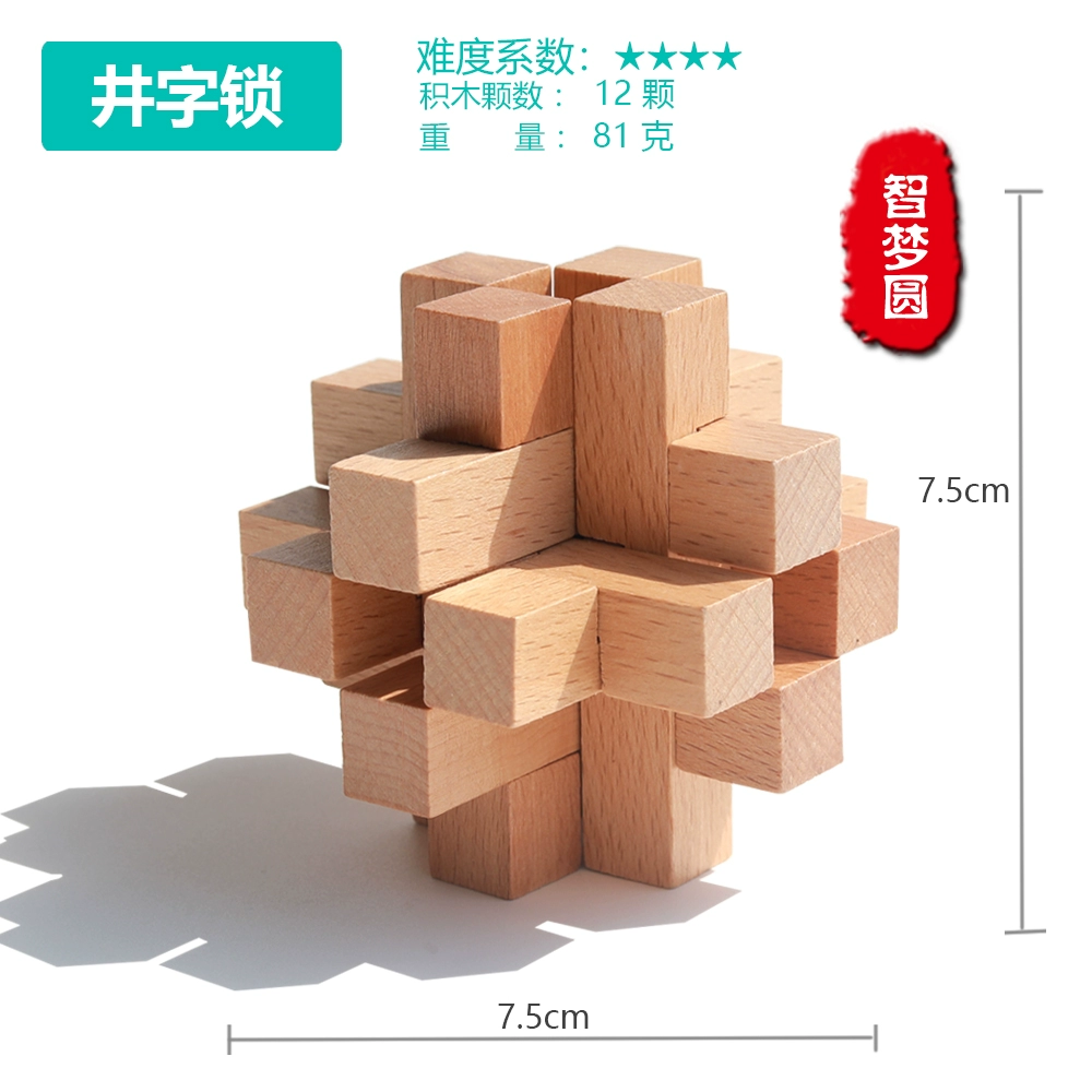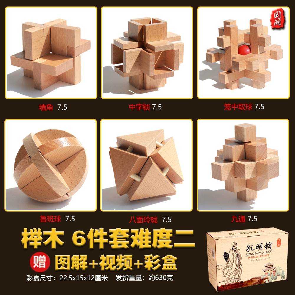 Kongmingsuo Lubansuo beech complete set of children's difficult 12-piece entry-level educational toy for primary school students hell level