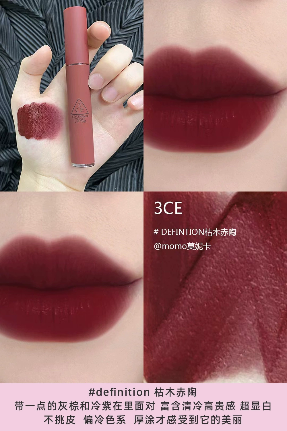 | nameOriginal | Korea 3CE Cloud/Velvet Lip Glaze Long-lasting Moisturizing Non-sticky Matte Matte Red Rotten Tomato Milk Tea Color Whitening |