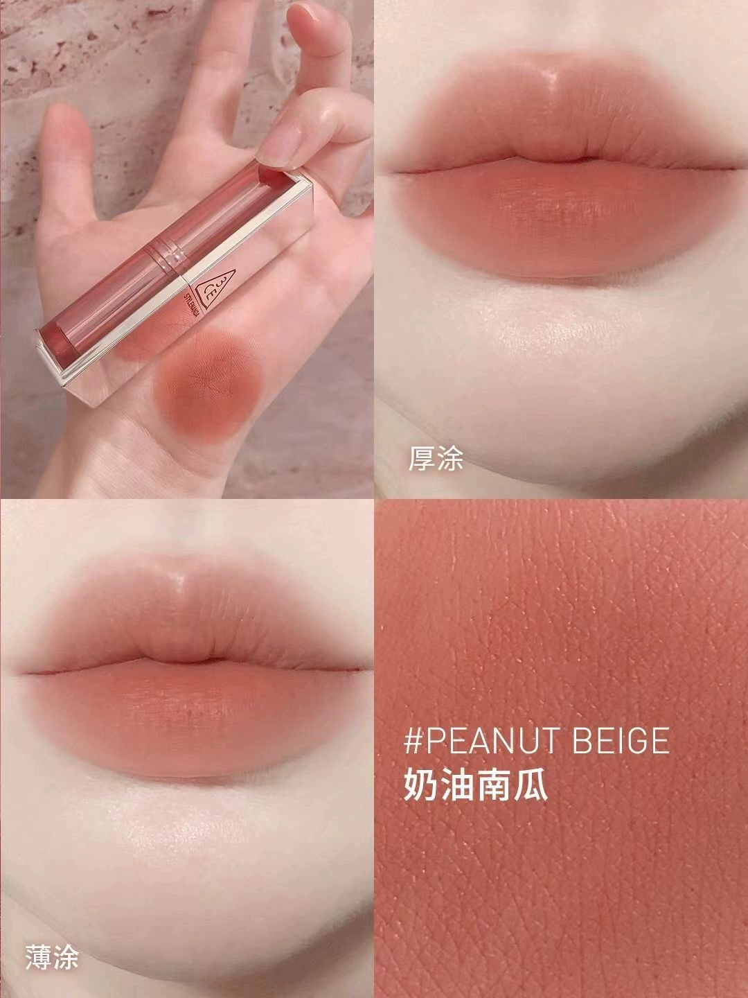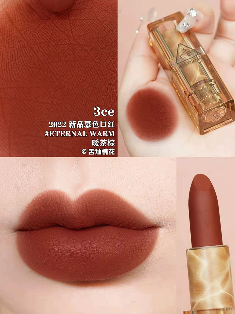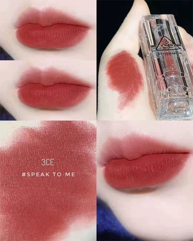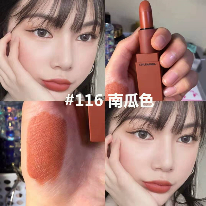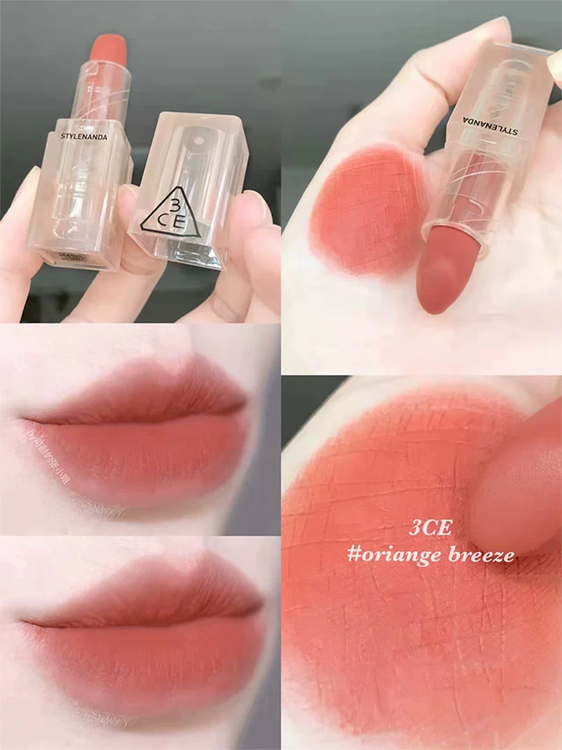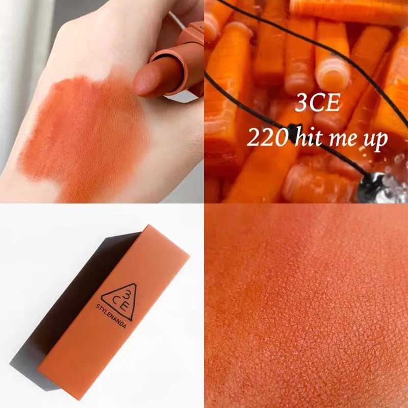 | nameOriginal | Korea 3CE transparent tube amber matte lipstick square tube matte dirty orange 220 earthy pumpkin color #116 whitening |