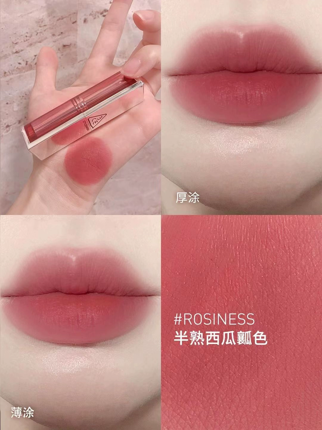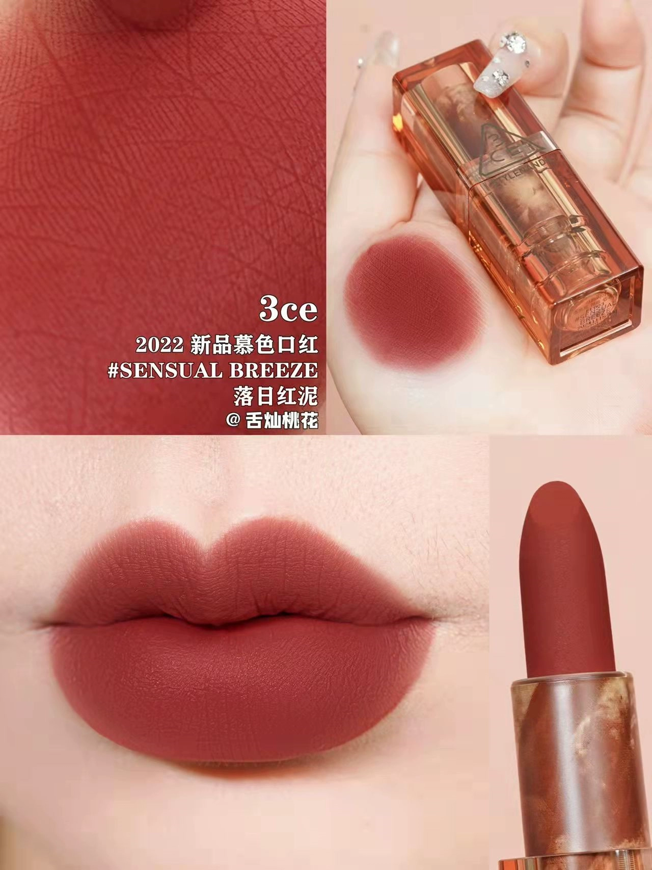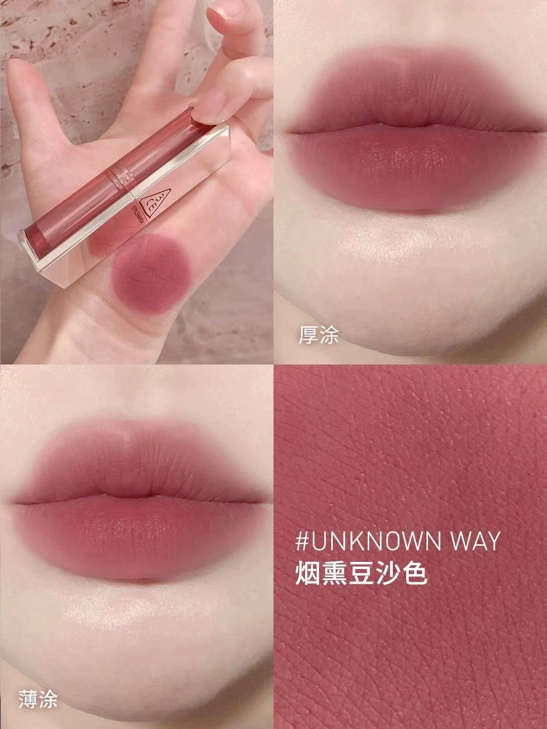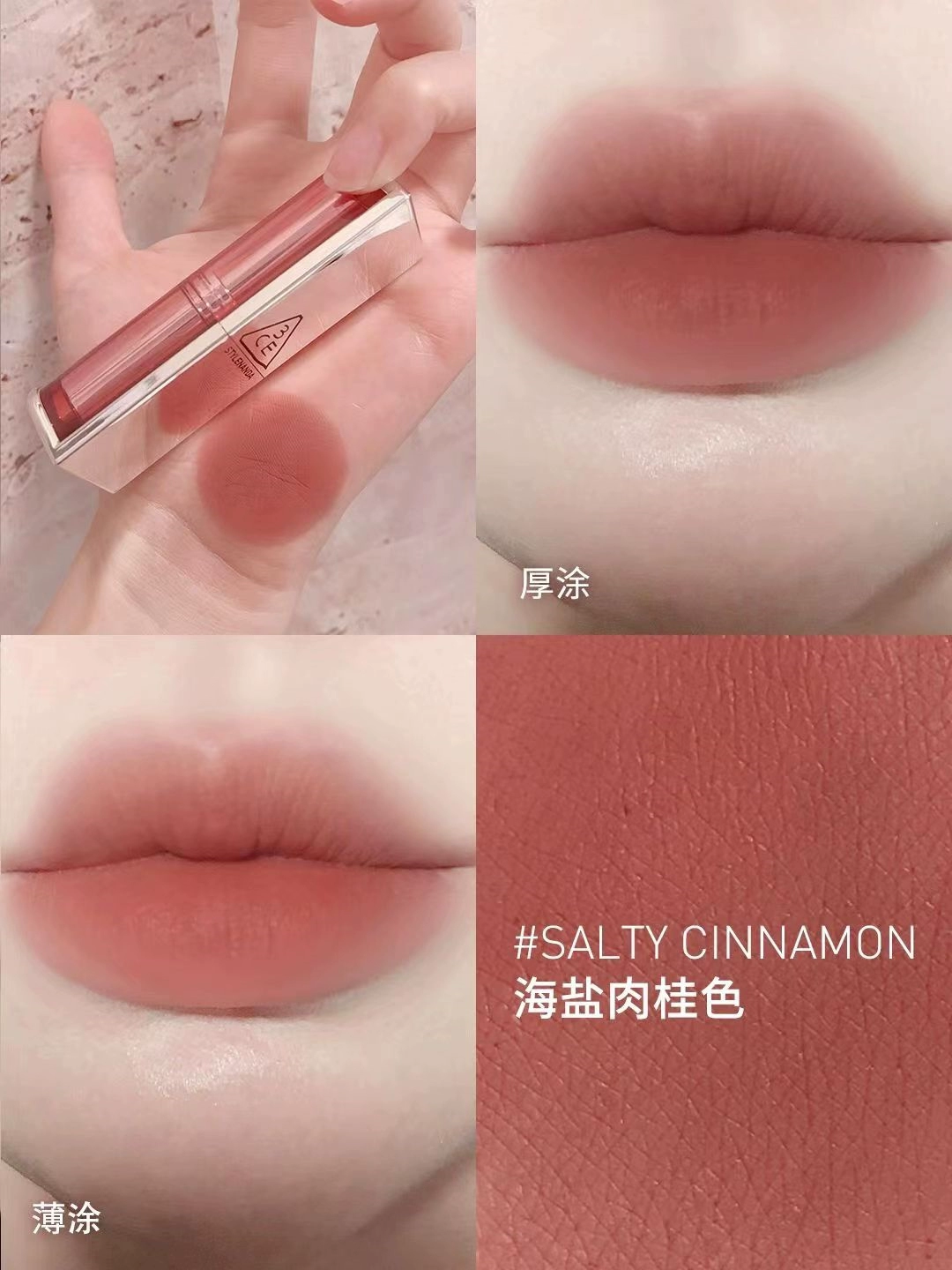 | nameOriginal | Korea 3CE transparent tube amber matte lipstick square tube matte dirty orange 220 earthy pumpkin color #116 whitening |