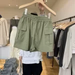 Korea Dongdaemun 2024 summer new style American retro drawstring elastic waist pocket workwear style casual shorts for women