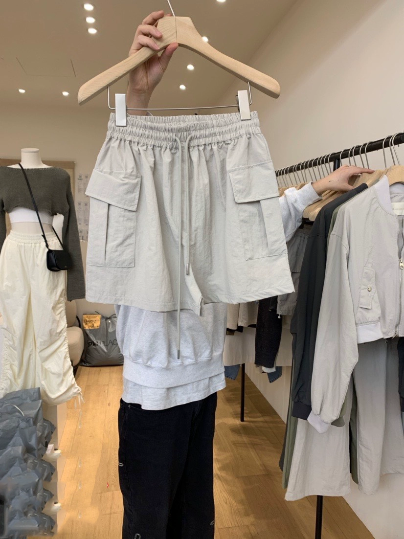 South Korea Dongdaemun 2025 spring and summer new American retro drawing rope loose waist pocket work style casual short pants female