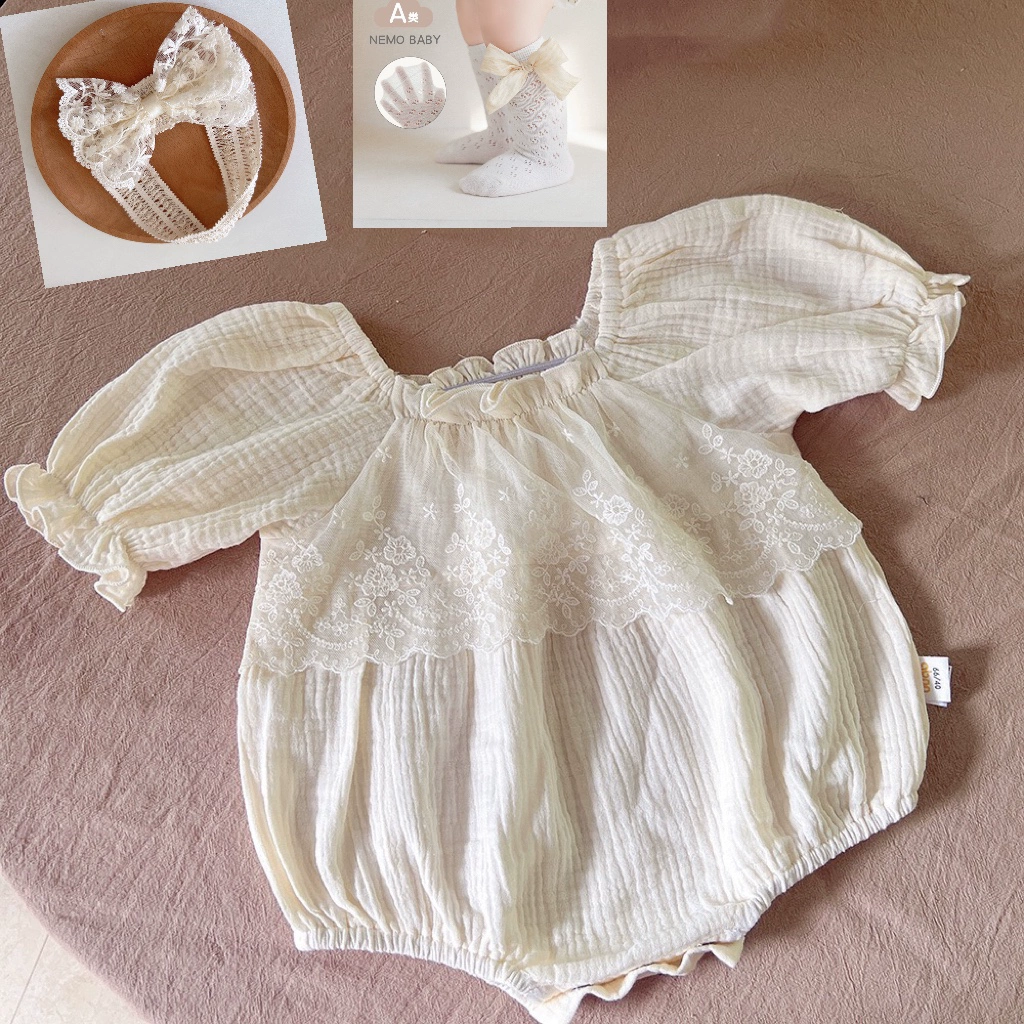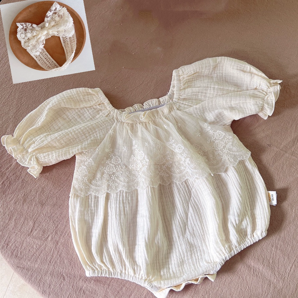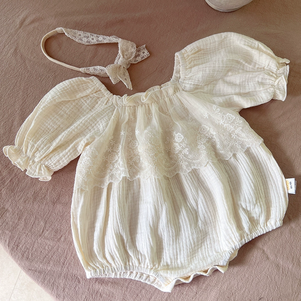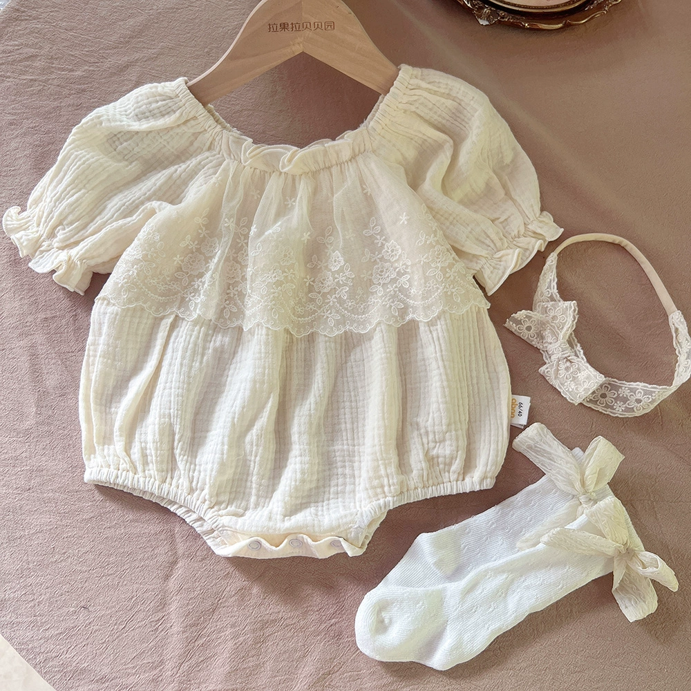 Korean baby summer dress baby girl princess puff sleeve bag fart coat pure cotton harem 100-day party one-year-old dress suit