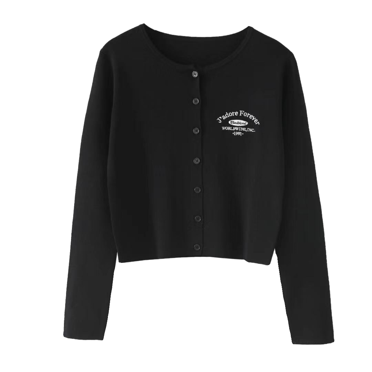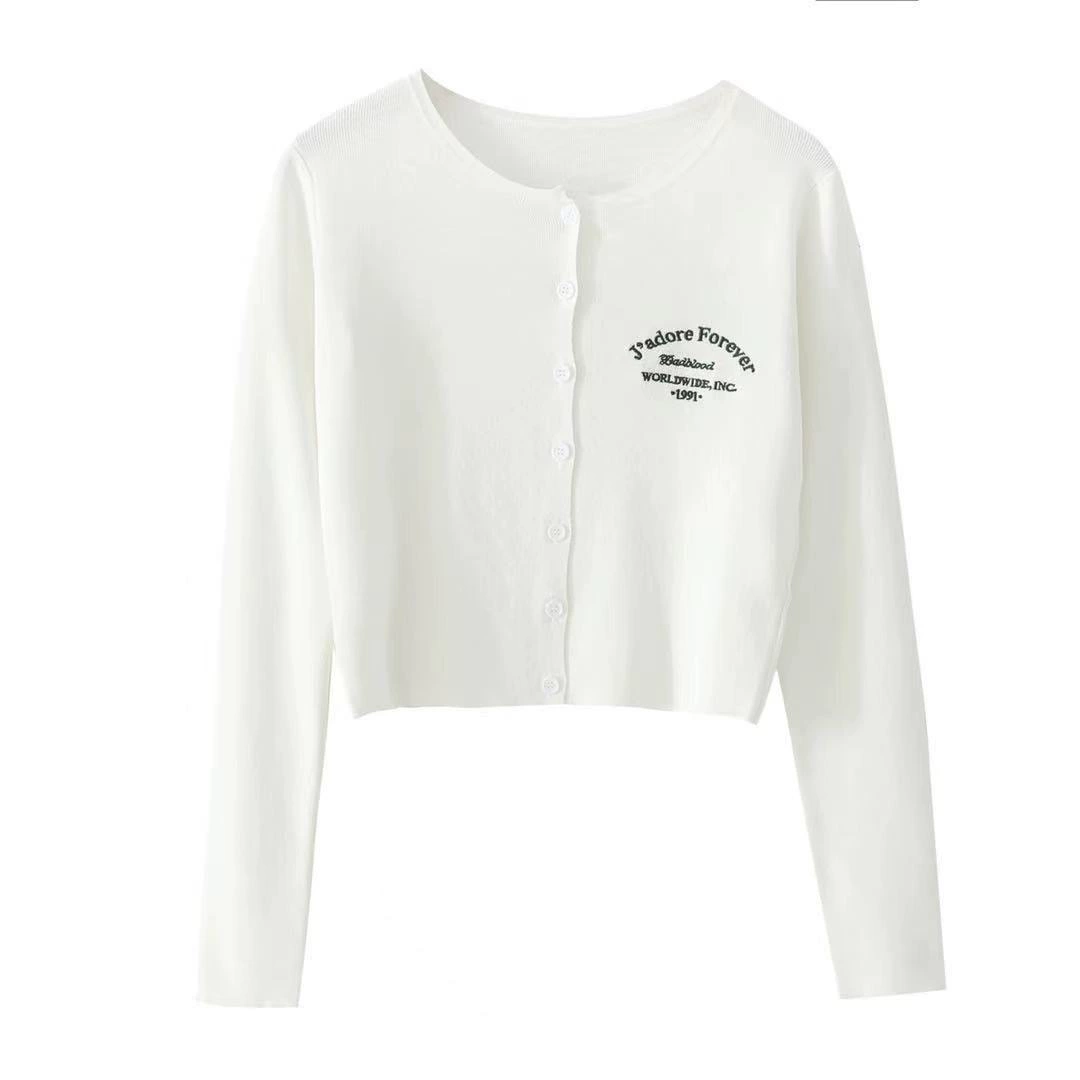 | nameOriginal | Korean badblood knitted cardigan for women Zhou Yutong same style short top embroidered letters single row buttons long sleeves |