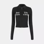 | nameOriginal | Korean badblood niche T-shirt women's black slimming zipper top letter printed long-sleeved versatile sweater |