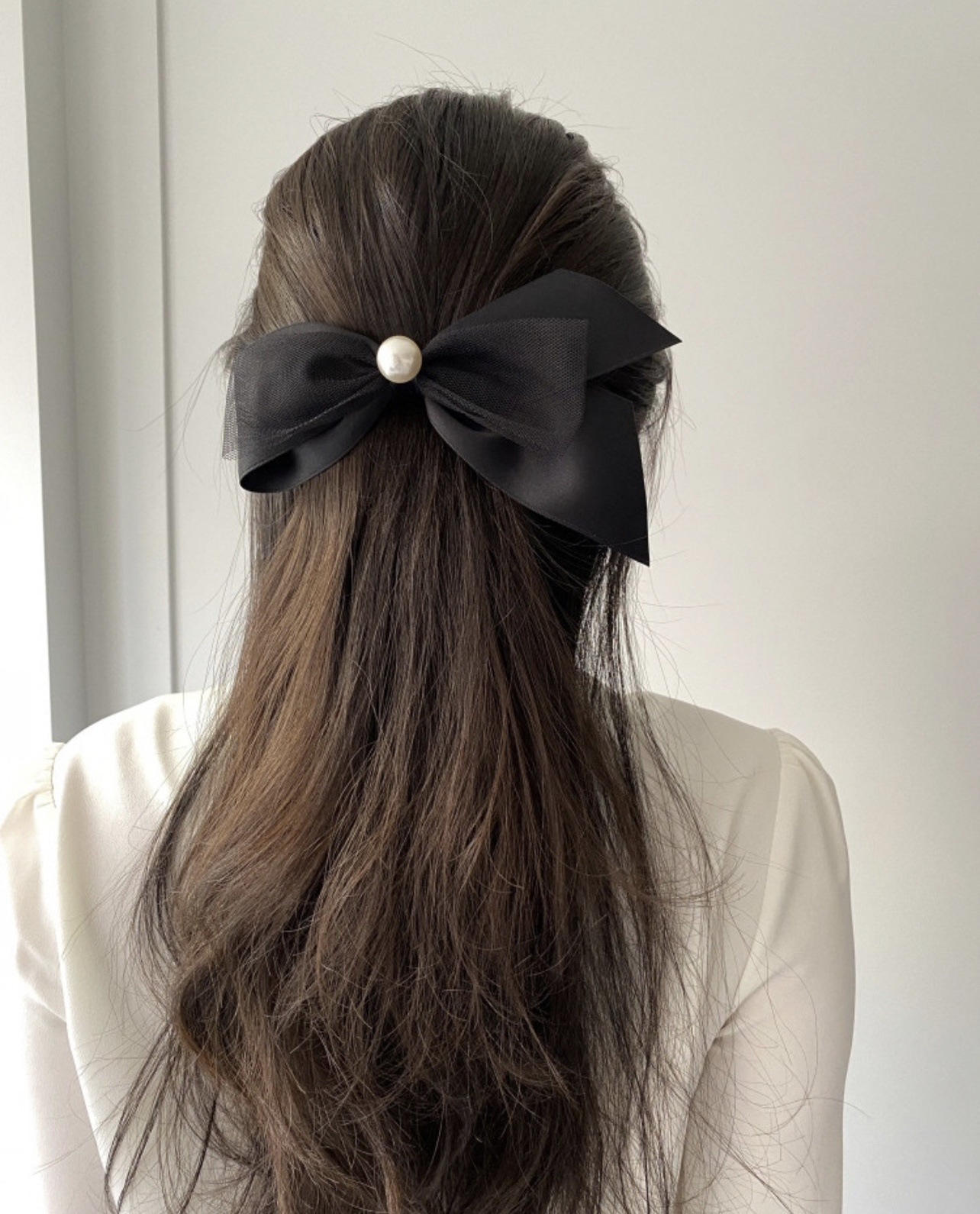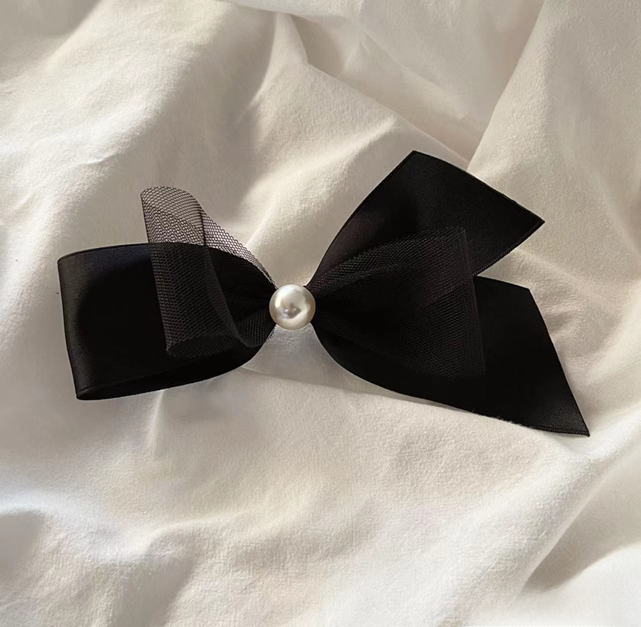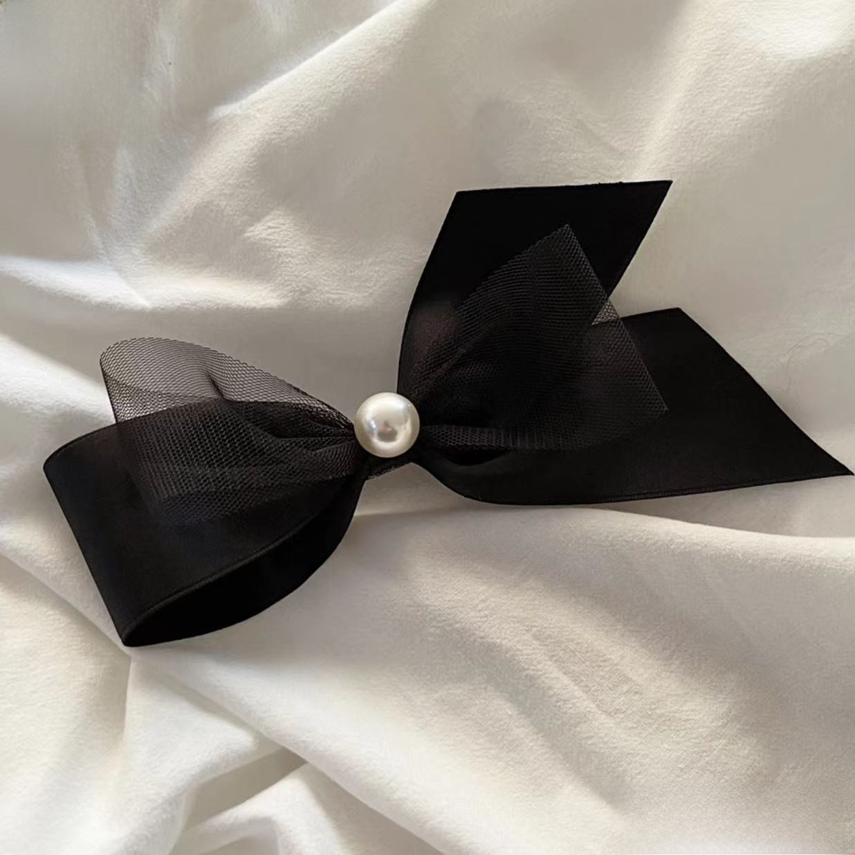 | nameOriginal | Korean Black Bow Hairpin Mesh Asymmetrical Pearl Spring Clip Escape Princess Top Clip High-grade Hair Accessories |