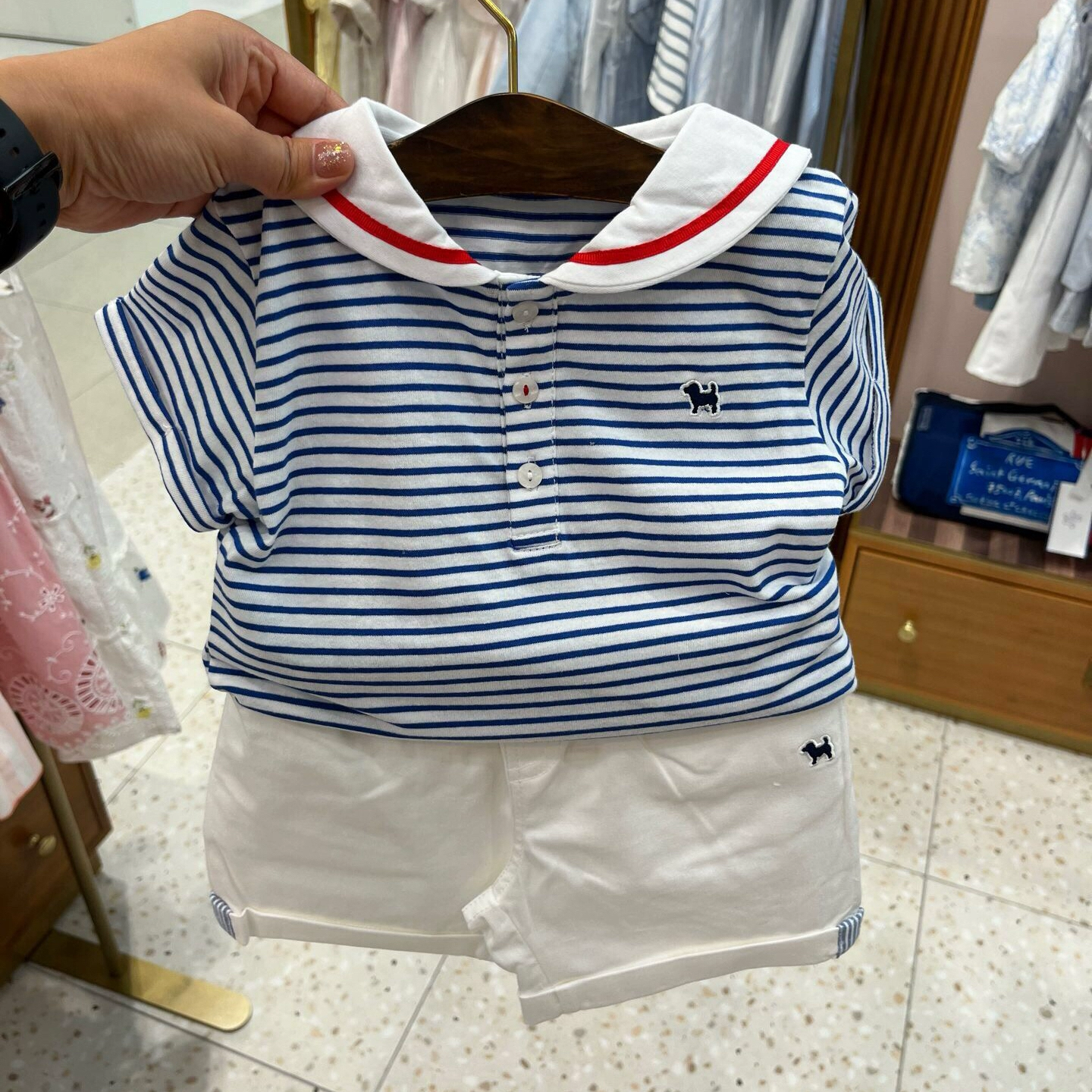 | nameOriginal | Korean blue striped navy collar white handsome children's clothing |
