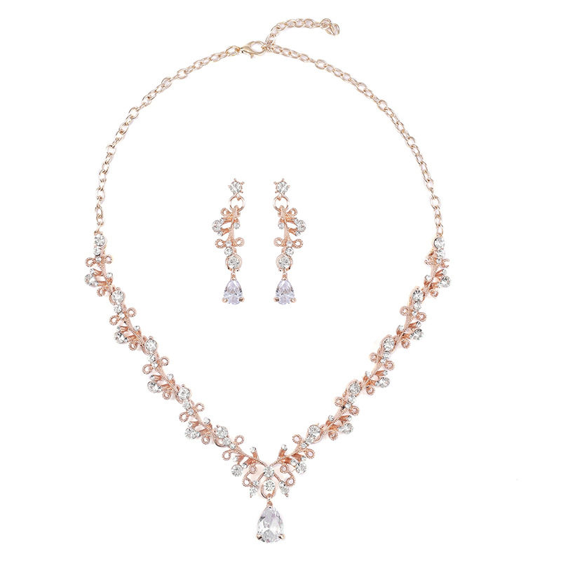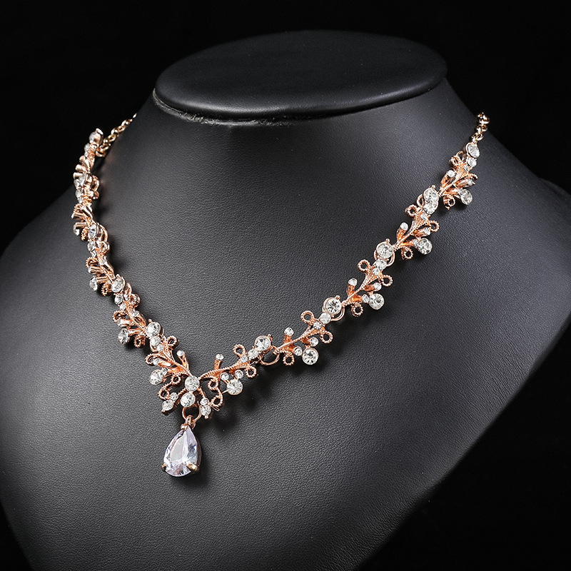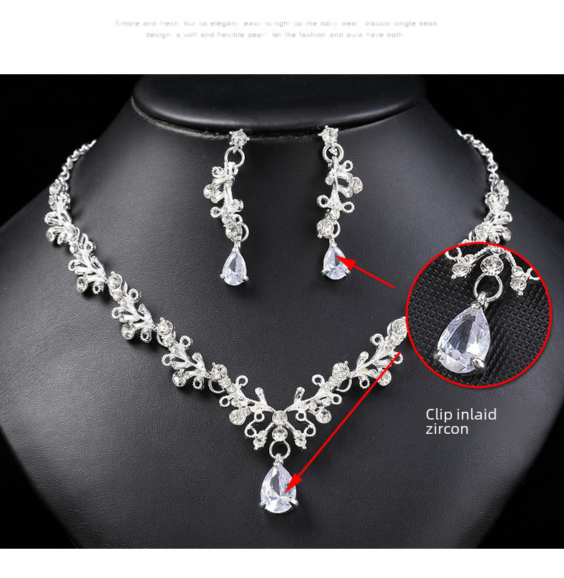 Korean Bride Wedding Necklace Earrings Set Female Clip Zircon Series Diamond Crystal Chains Evening Dress Accessories