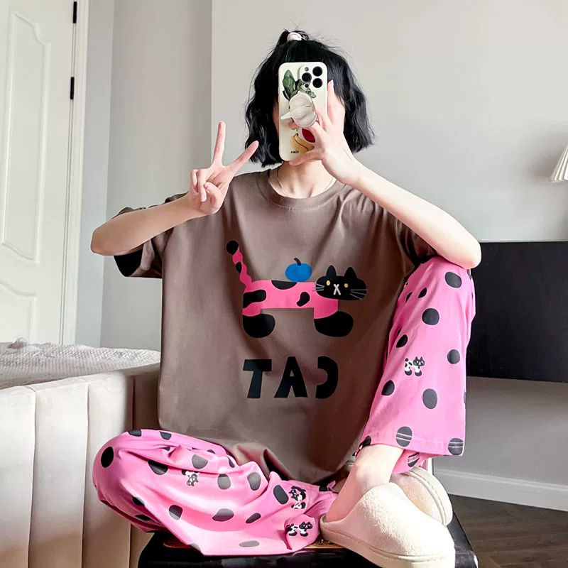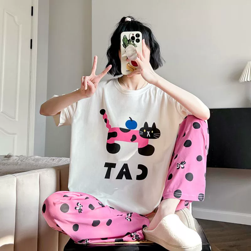 | nameOriginal | Korean cartoon cat girl's pure cotton home wear pajamas |