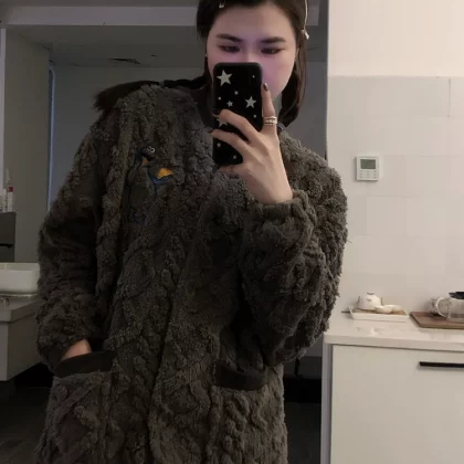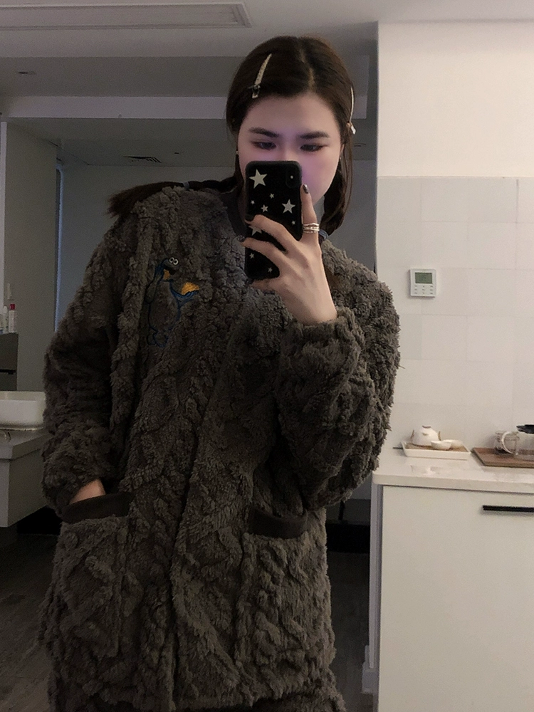 | nameOriginal | Korean cartoon cookie monster thickened and velvet couple pajamas for women in autumn and winter warm plush solid color long-sleeved trousers |