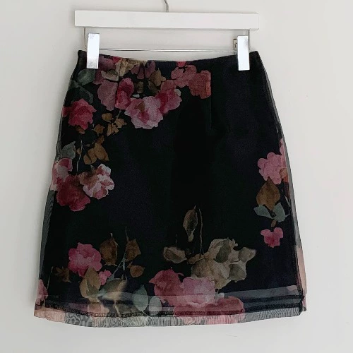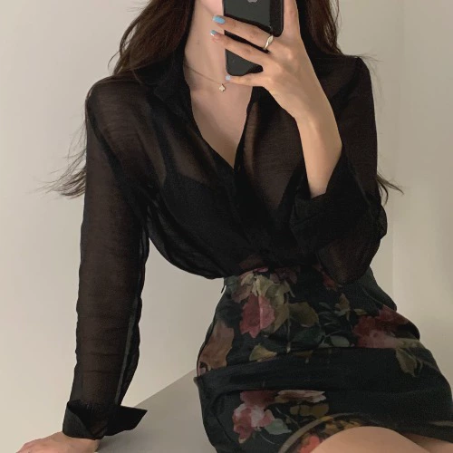 | nameOriginal | Korean chic elegant lapel thin see-through long-sleeved shirt + high-waist A-line small floral skirt short skirt for women |
