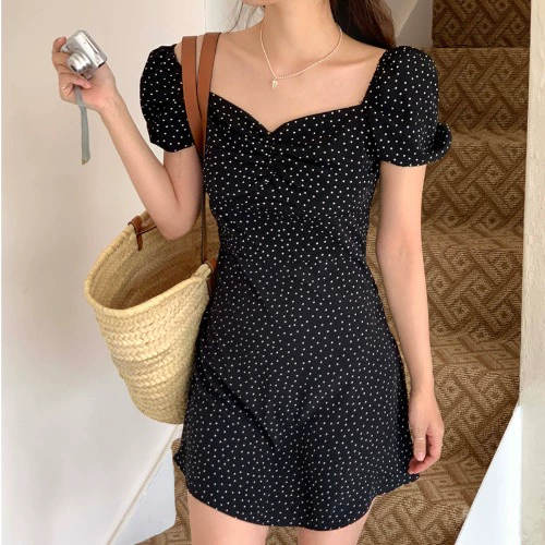 | nameOriginal | Korean chic French one-shoulder polka-dot dress for women summer retro temperament slim puff sleeve short skirt |