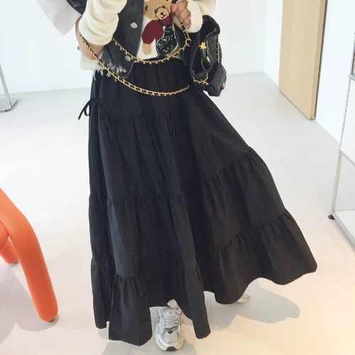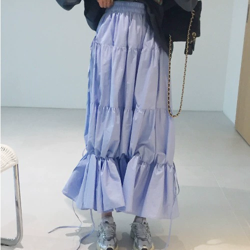 | nameOriginal | Korean chic spring niche gentle style lace-up bow design high-waisted versatile mid-length skirt for women |