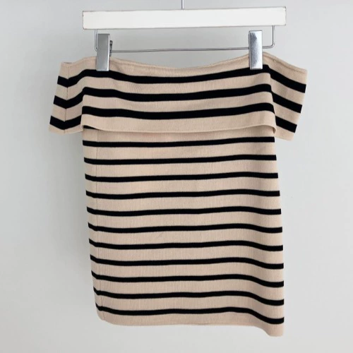 | nameOriginal | Korean chic summer retro sexy small one-line collar slim and versatile contrast striped sweater top for women |