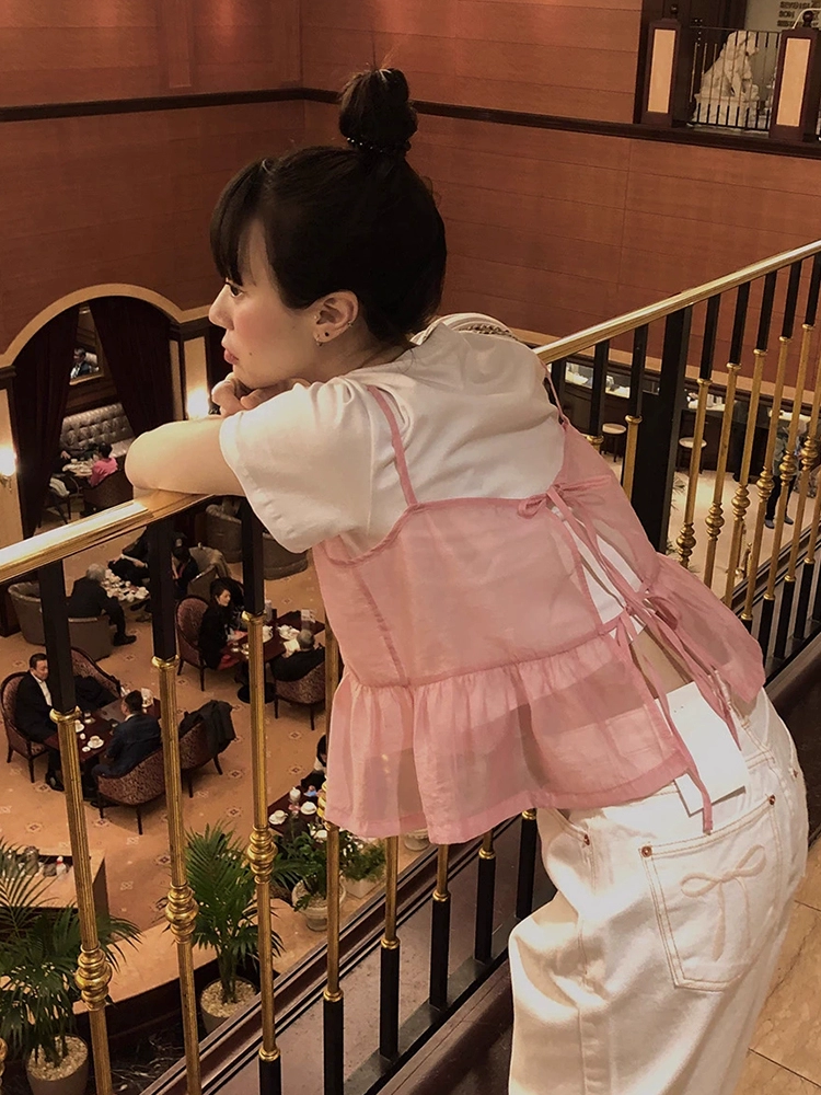 | nameOriginal | Korean chic summer sweet temperament back strap bow design see-through layered vest camisole for women |
