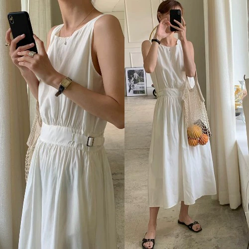 | nameOriginal | Korean chic white sleeveless vest dress 2024 summer new style French temperament Platycodon waist slimming long skirt |