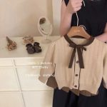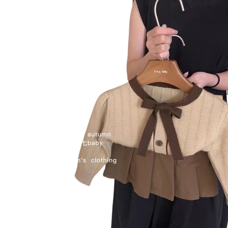 | nameOriginal | Korean children's clothing 2024 autumn girls foreign style brown hollow knit cardigan female baby bow lace sweater |