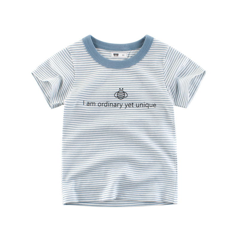 Korean children’s clothing new 2024 summer children’s short sleeve T-shirt striped round neck top children’s clothes wholesale