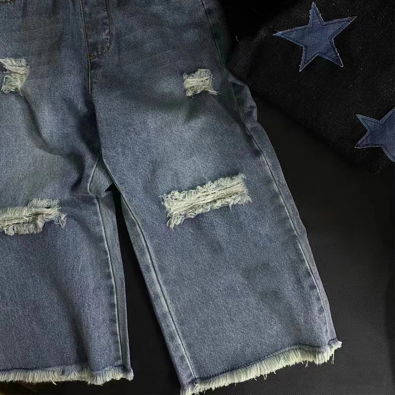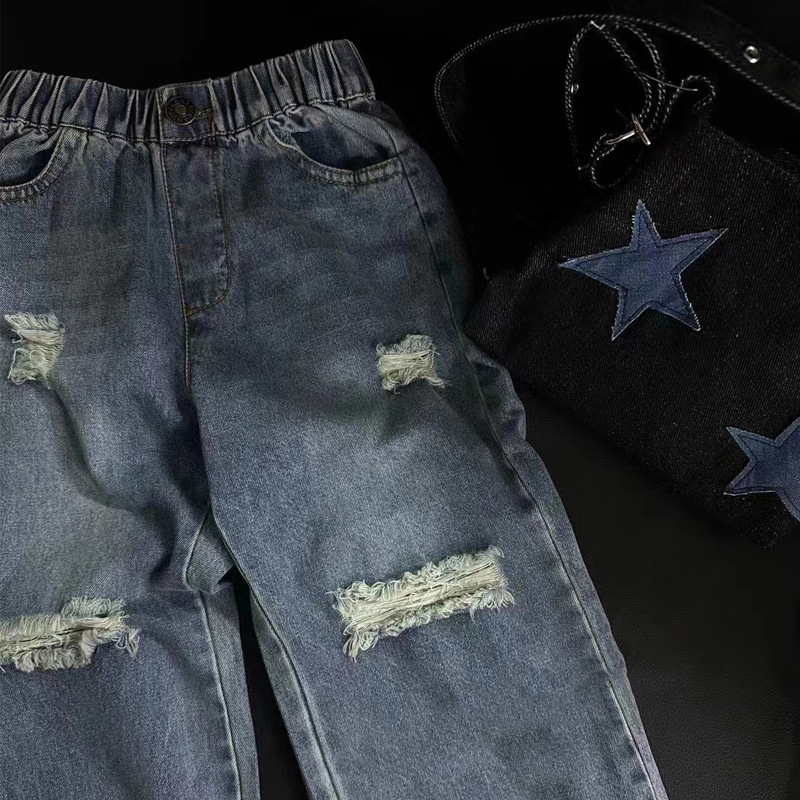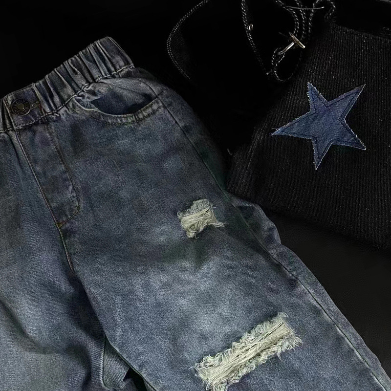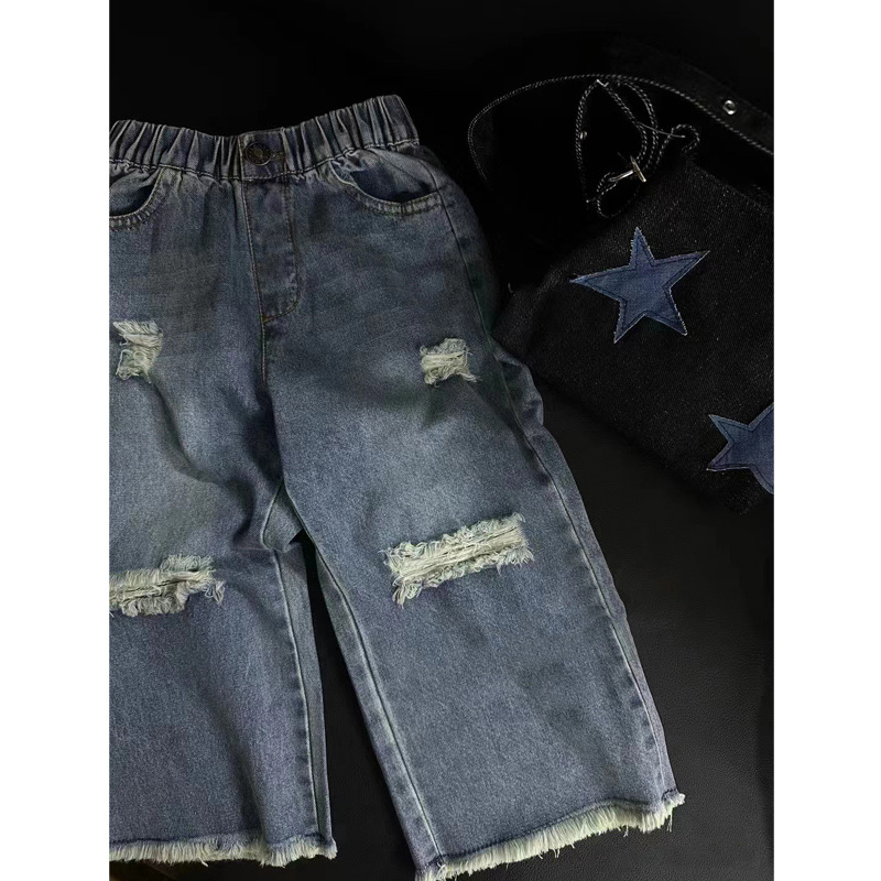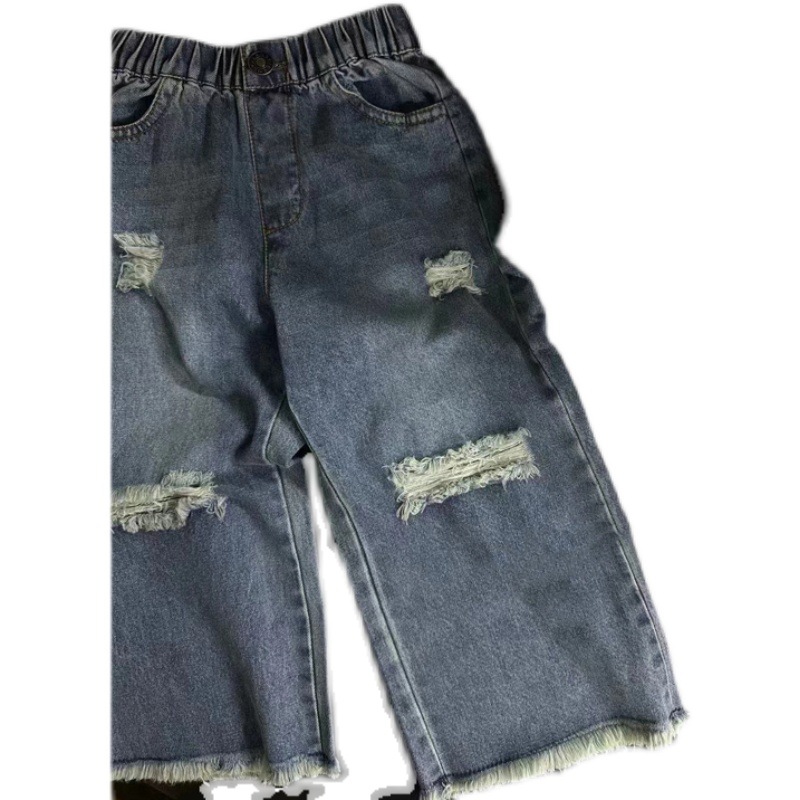 | nameOriginal | Korean Children's Ripped Jeans 2024 Summer New Girls Boys Retro Fashionable Straight Leg Pants |