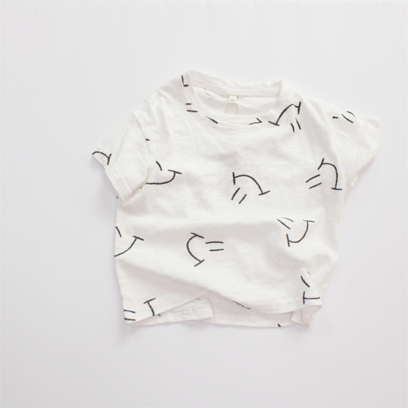 Korean Children's Short-sleeved T-shirt Glub Cotton Printed Smiley Face Trendy Half-sleeved Top for Boys and Girls Pure Cotton Children's Round Neck T-shirt