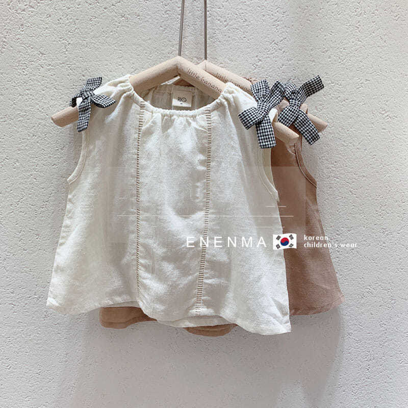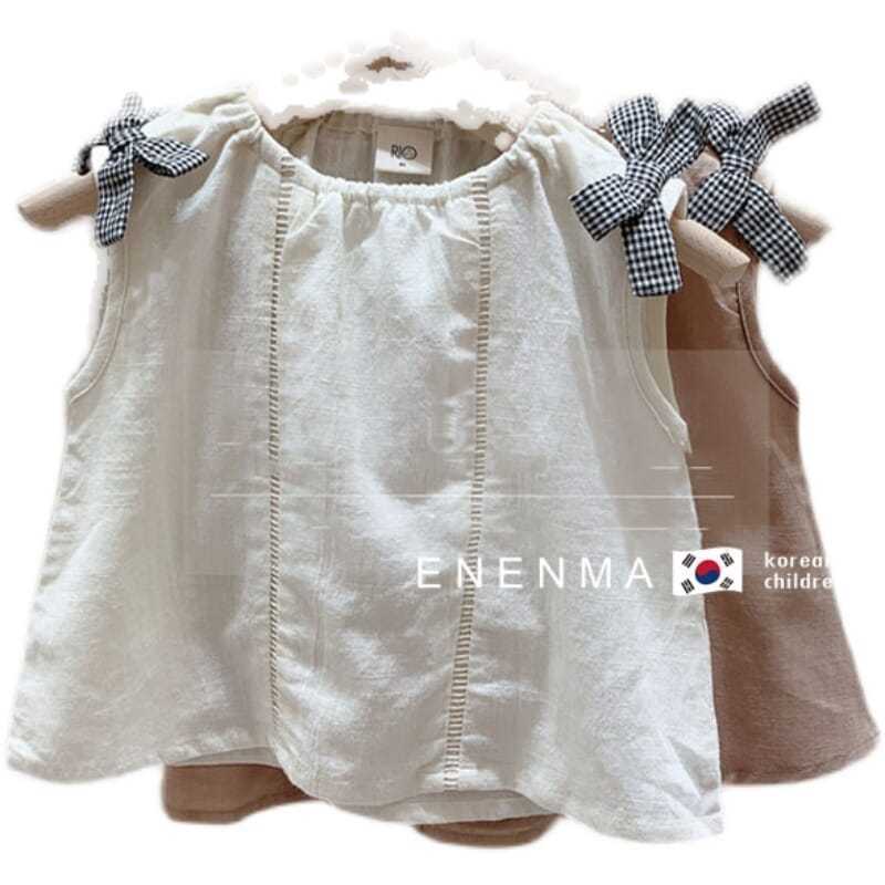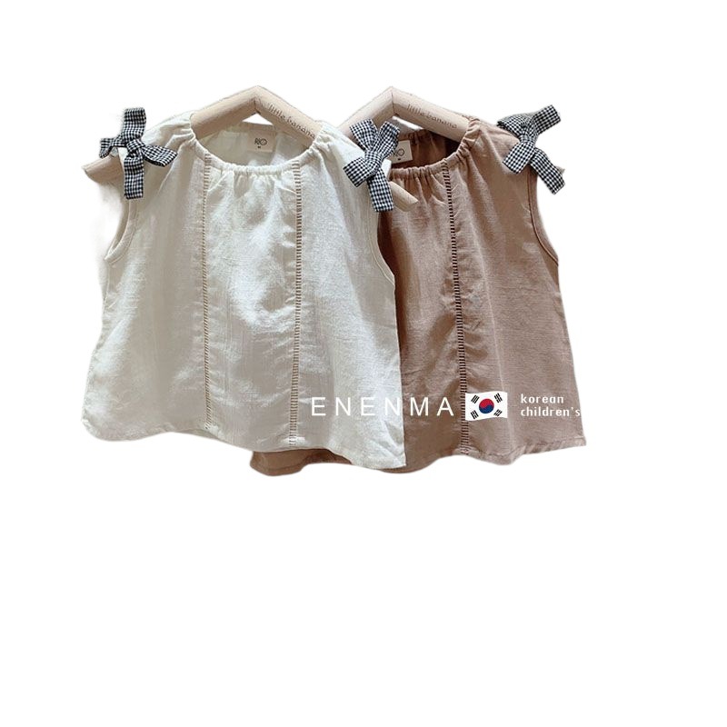 Korean Children’s Wear Girls 2021 Summer Sleeveless Shirt Children’s Loose Cotton Linen Bow Simple Elegant Shirt