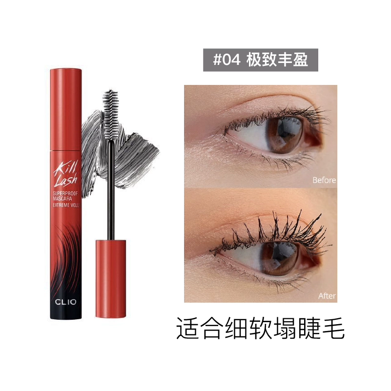 Korean clio mascara newly upgraded thick, slim, long and curled 10 black brown waterproof and sweat-proof, long-lasting and not easy to smudge