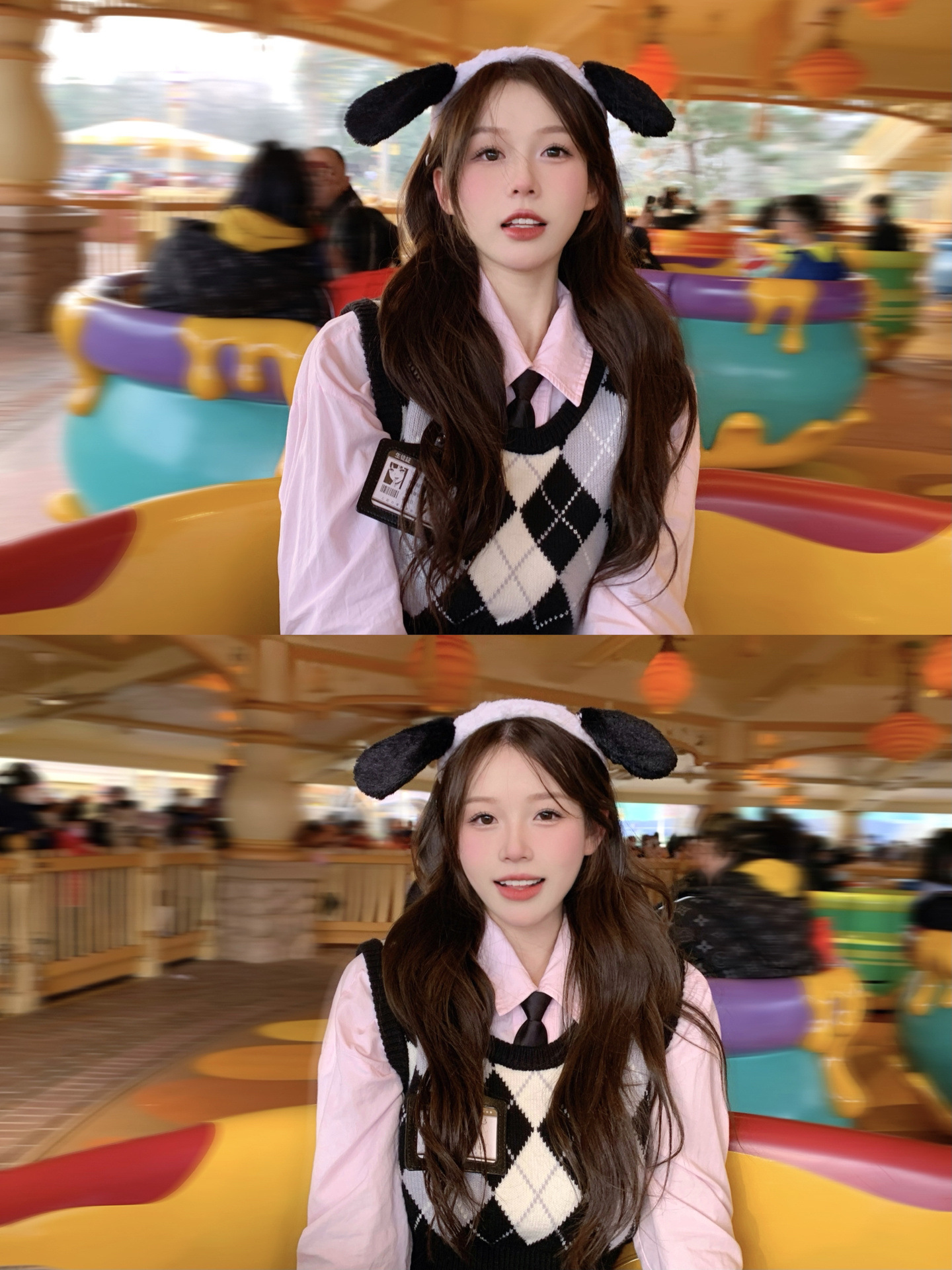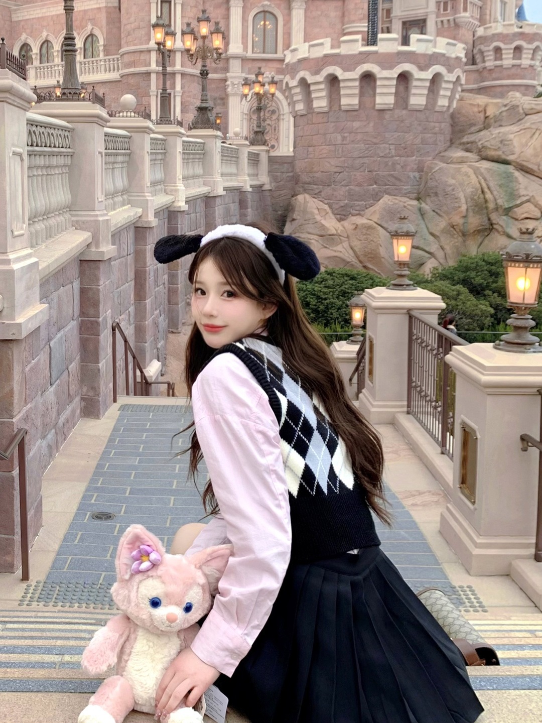 | nameOriginal | Korean college style rhombus vest light pink long-sleeved shirt JK uniform pleated skirt di xiaoxini wear match suit women |