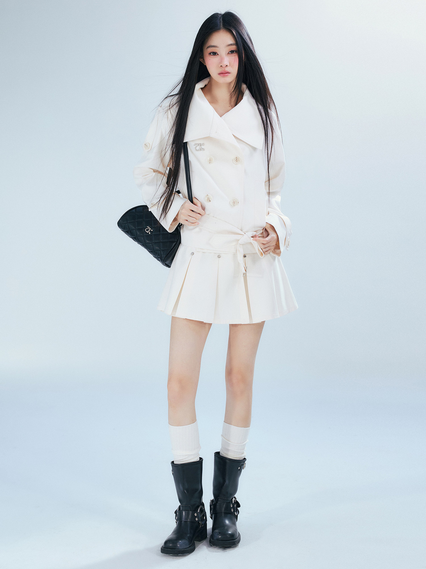 | nameOriginal | Korean commuter style double breasted khaki short trench coat A- line pleated skirt two-piece set |