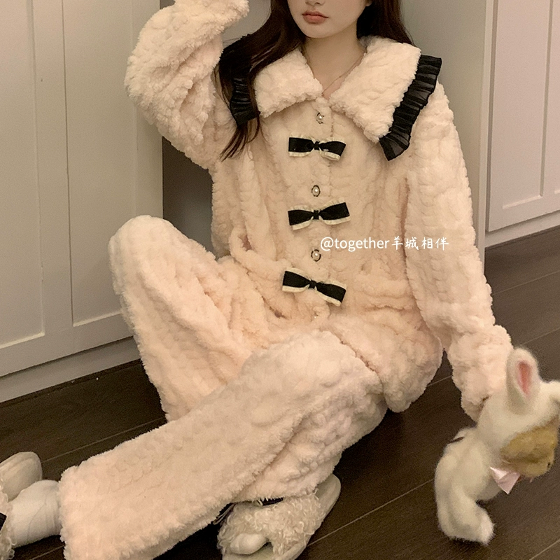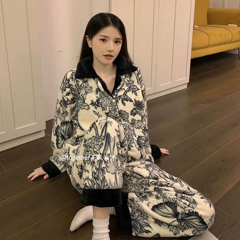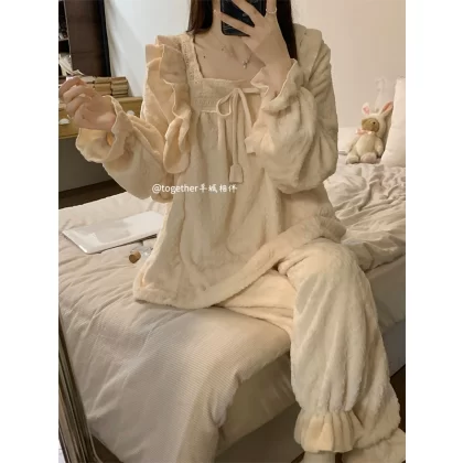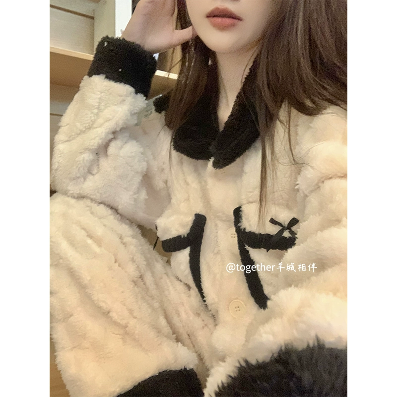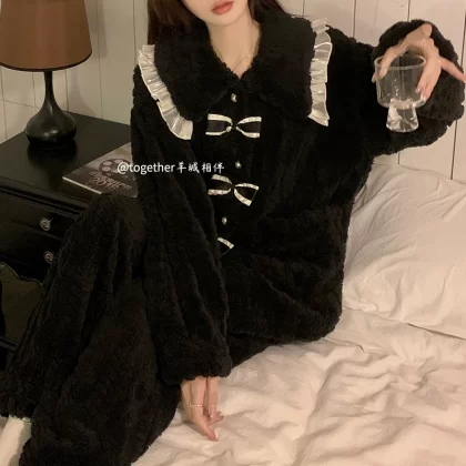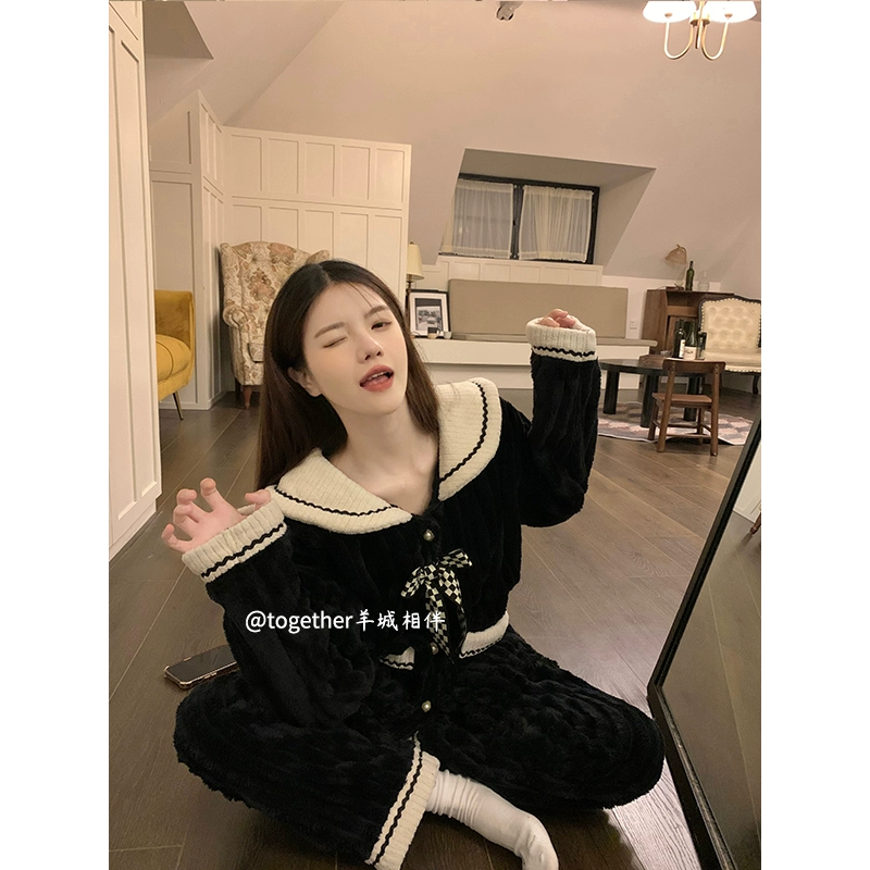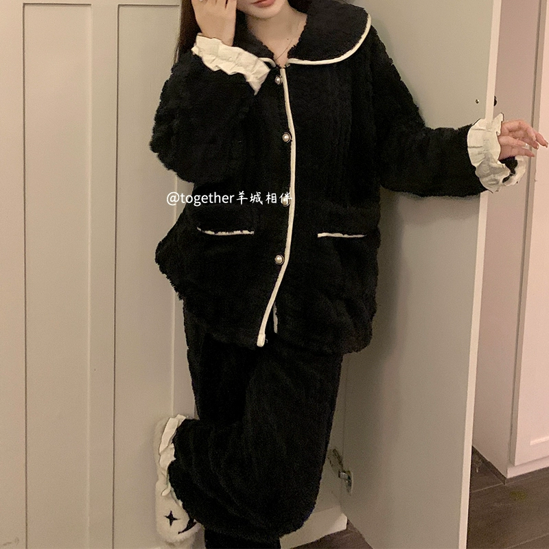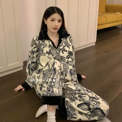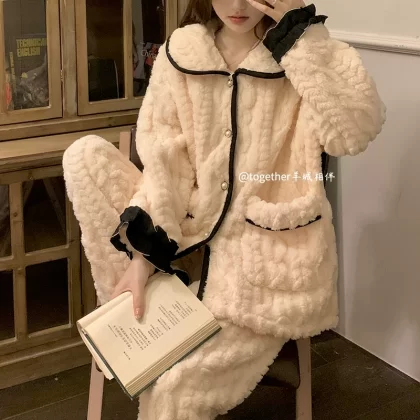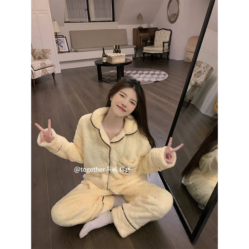 | nameOriginal | Korean contrasting color small fragrance style women's coral velvet pocket pajamas |