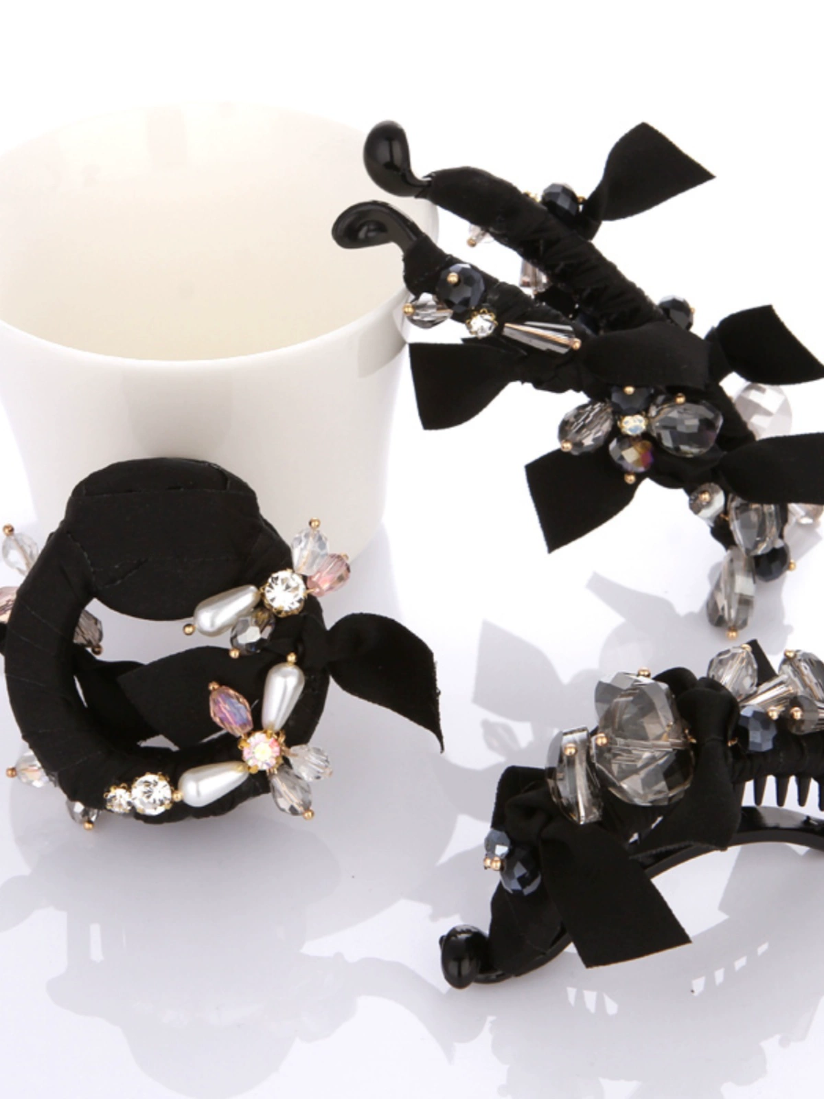 | nameOriginal | Korean diamond-encrusted pearl banana clip vertical clip ponytail clip fabric bow toothed non-slip gripper twist clip hair clip |