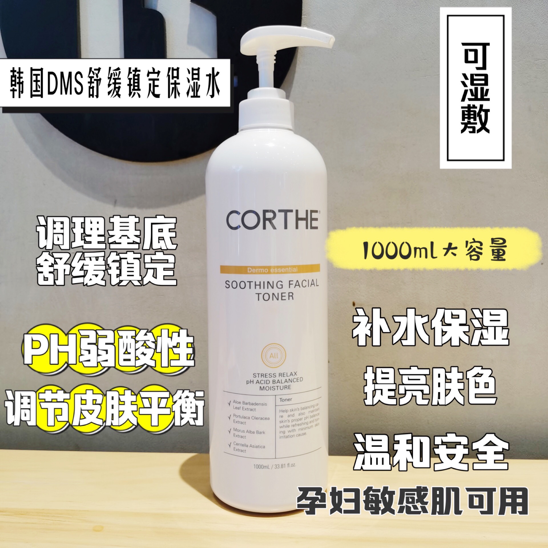 | nameOriginal | Korean DMS CORTHE soothing, calming and moisturizing toner regulates skin PH balance and is suitable for sensitive pregnant women |