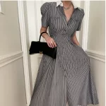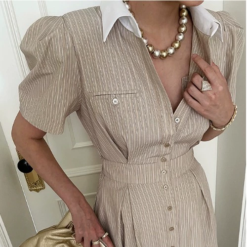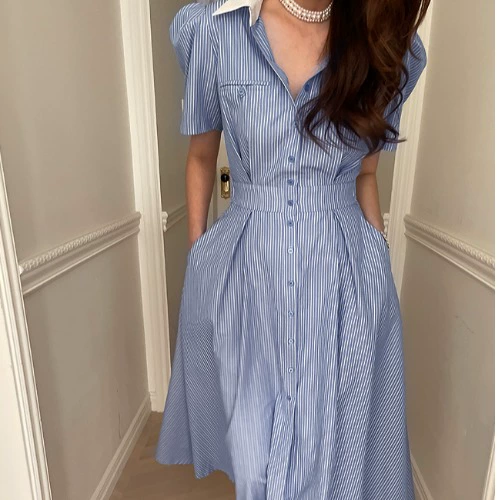 | nameOriginal | Korean Dongdaemun chic summer niche light luxury elegant contrasting color POLO collar embellished long single-breasted dress |