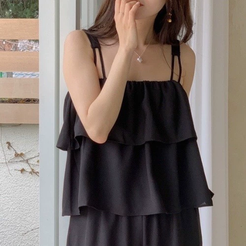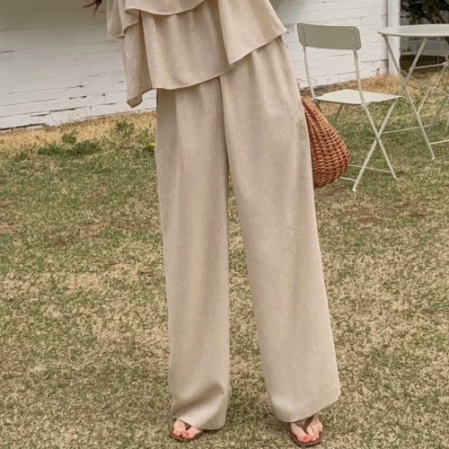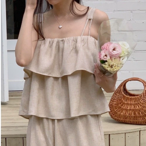 | nameOriginal | Korean Dongdaemun ins summer French style one-line collar ruffle vest + high-waisted wide-leg casual pants suit |