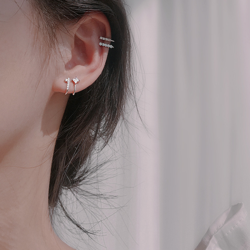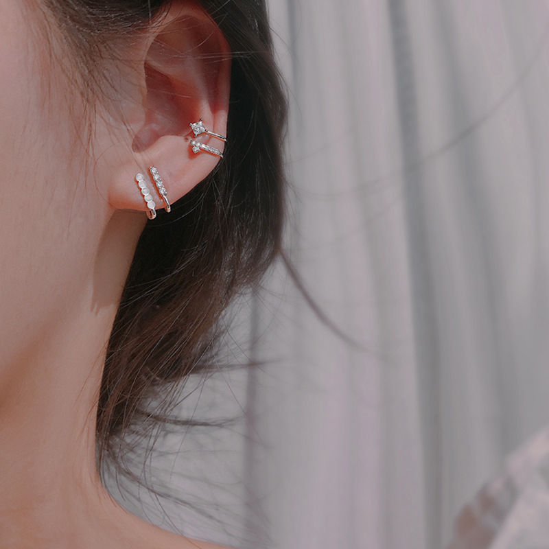 Korean Fashion Elegant Compact Ear Bone Clip Mori Super Fairy Earrings Double-Layer Asymmetric Ear Clip for Women