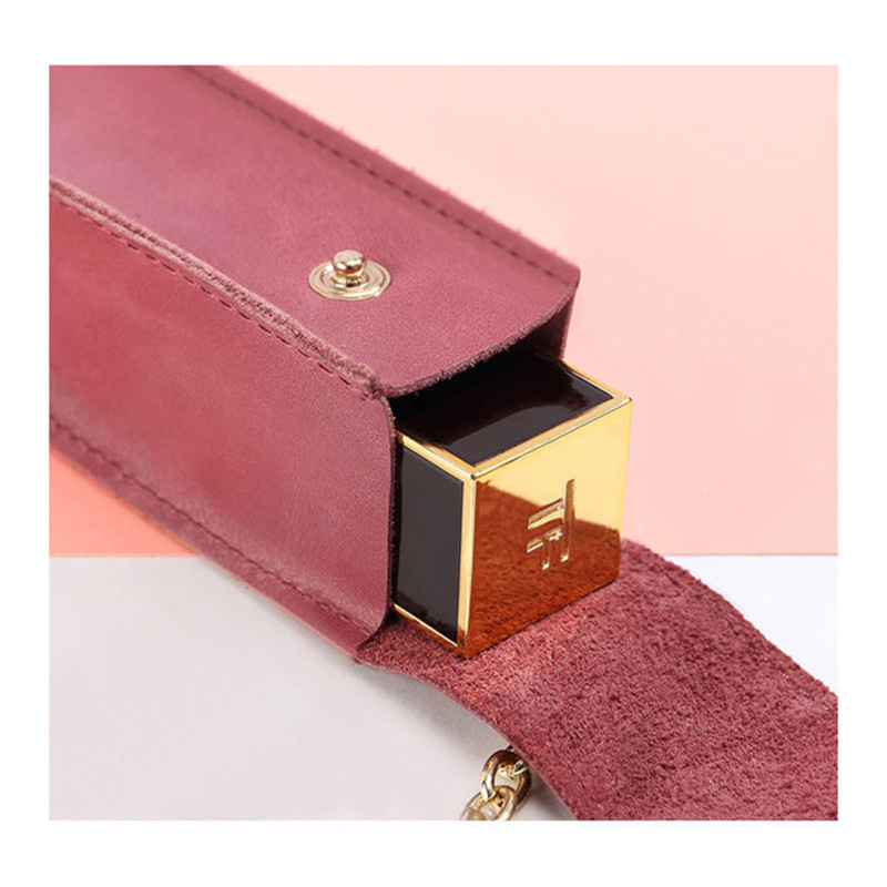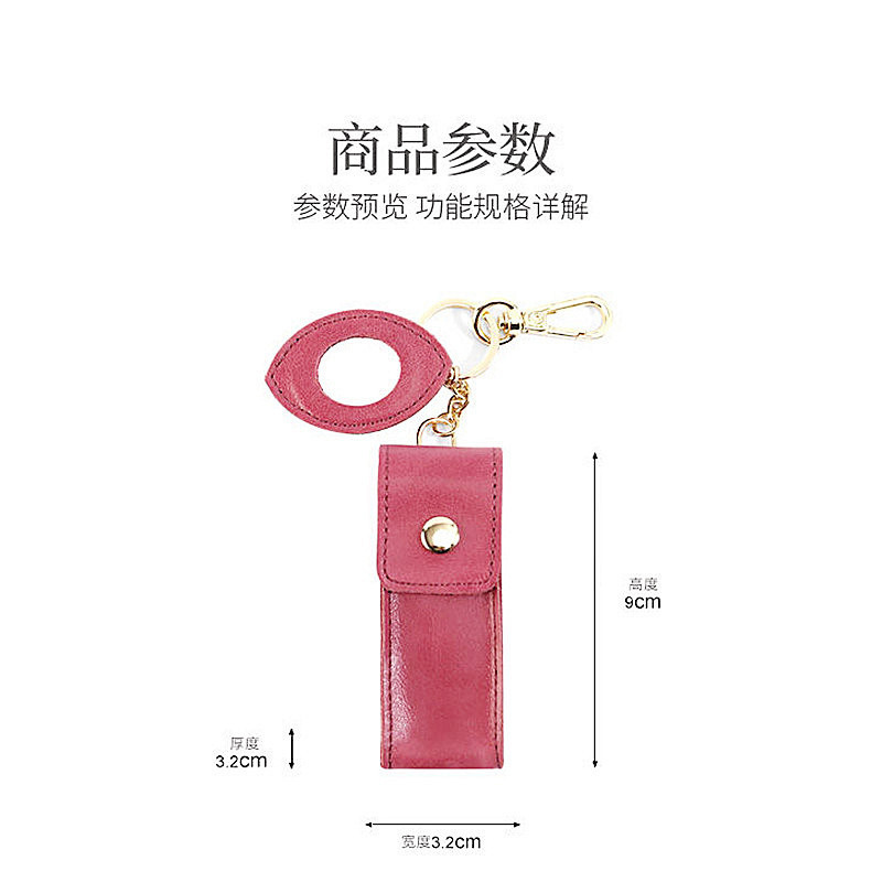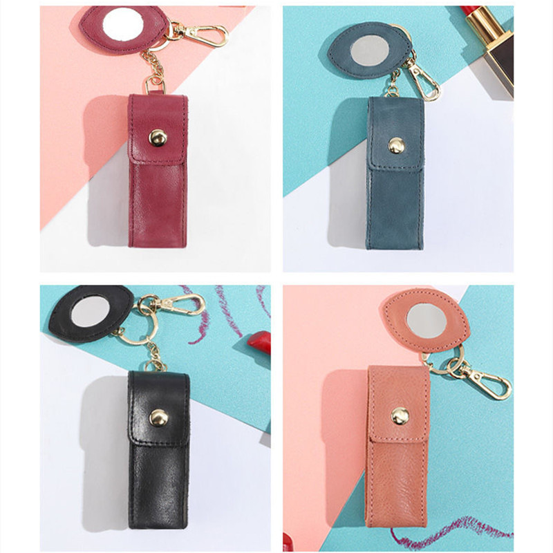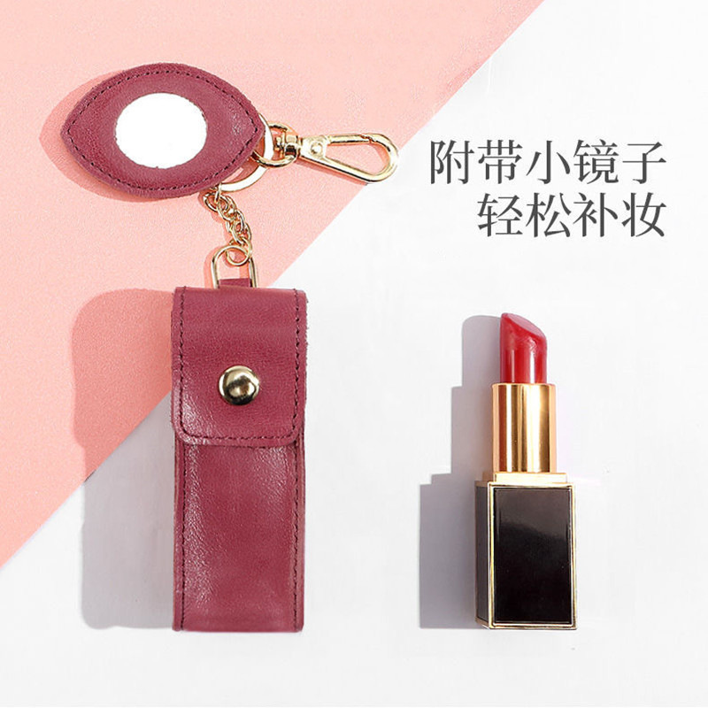Korean fashion genuine leather lipstick case single pack lip gloss storage bag with mirror cosmetic storage leather case