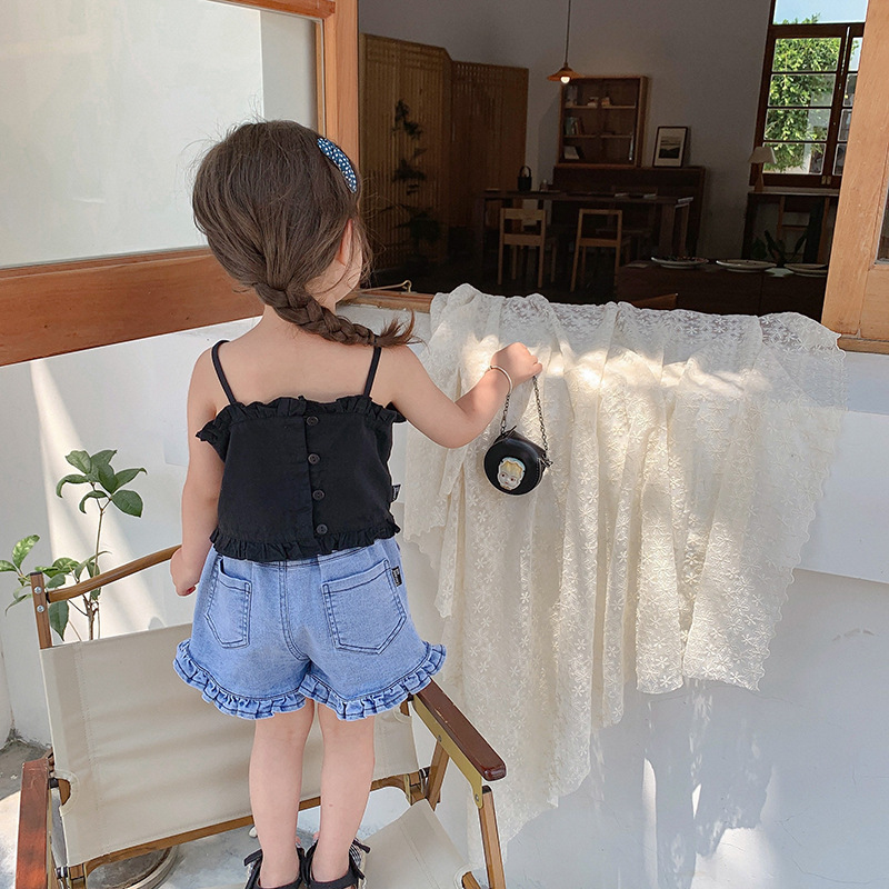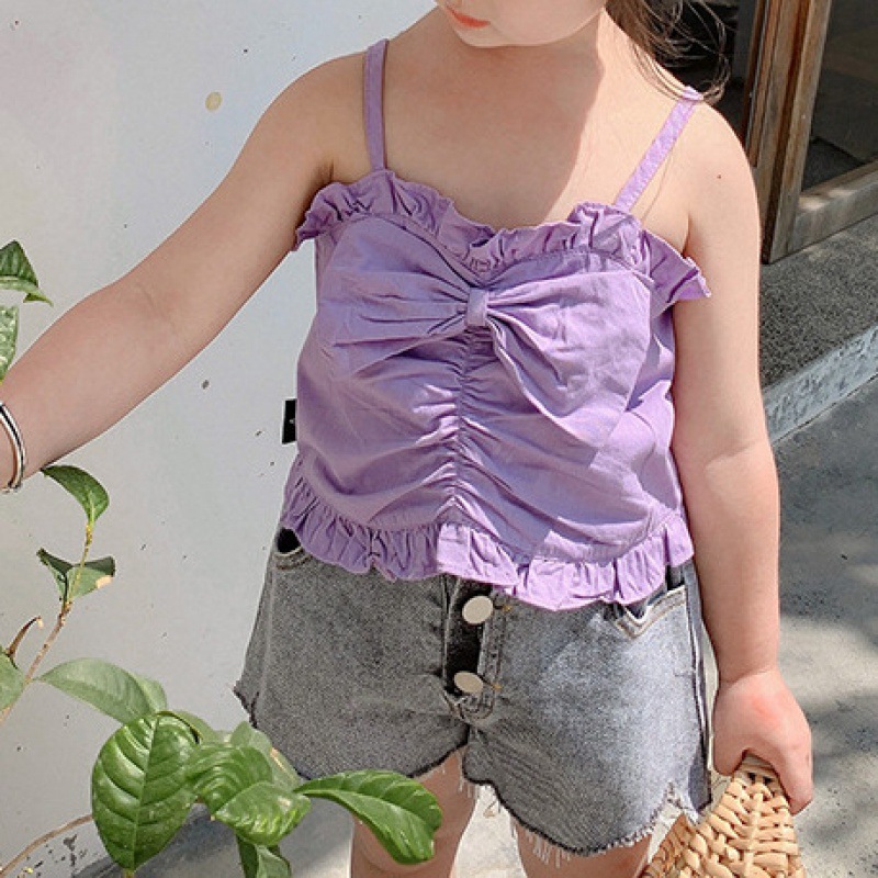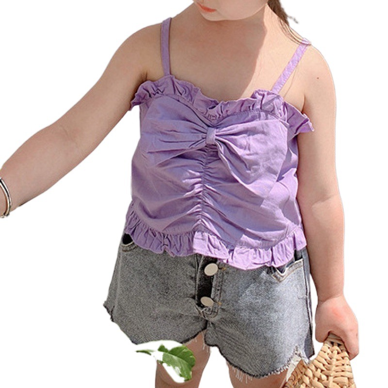 Korean Fashion Short-sleeved Children’s Wear 2024 Summer New Style Western Style Children’s Wear All-match Purple Casual Cotton Sling Shirt