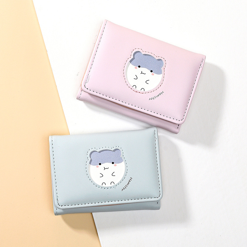 Korean Fashion Short Women’s Three-fold Wallet Cute Animal Coin Purse Simple Multi-card PU Printed Card Bag for Women