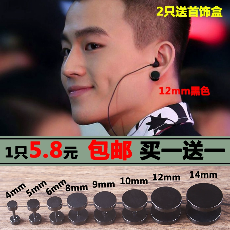 Korean Fashion Simple Personalized Earrings Men’s Single Round Black Women’s Internet Celebrity Trendy Earrings Ear Accessories Free Shipping