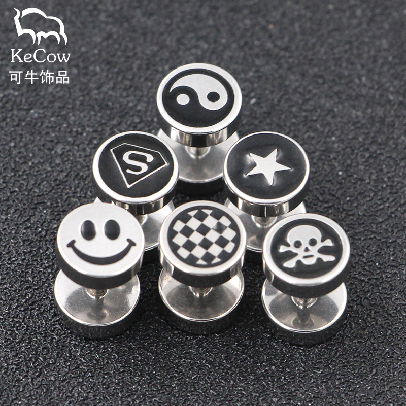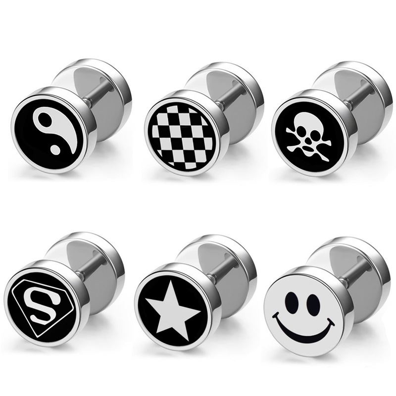 | nameOriginal | Korean fashion skull Smiley dumbbell corrosion earrings men and women double titanium steel earrings cross-border wholesale |