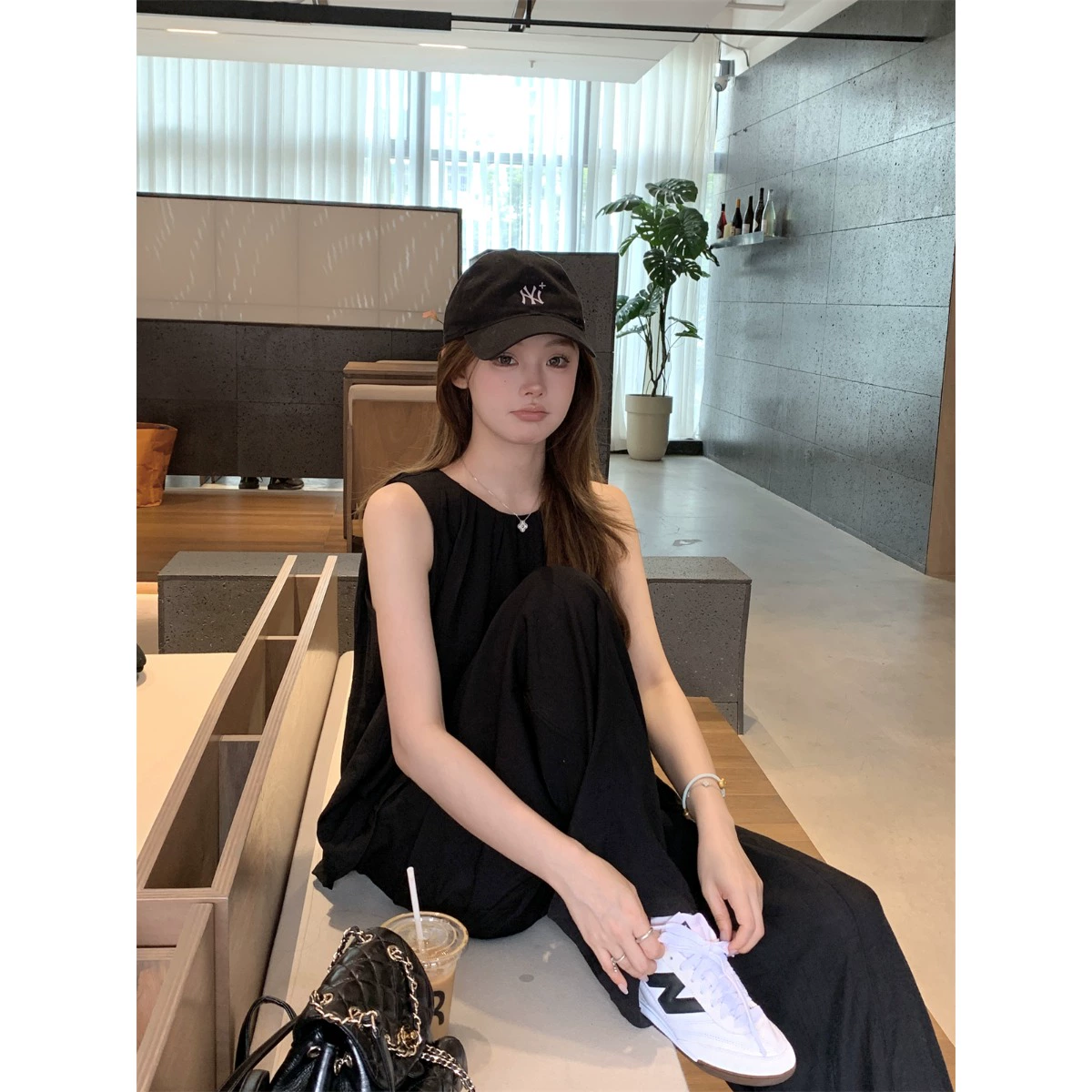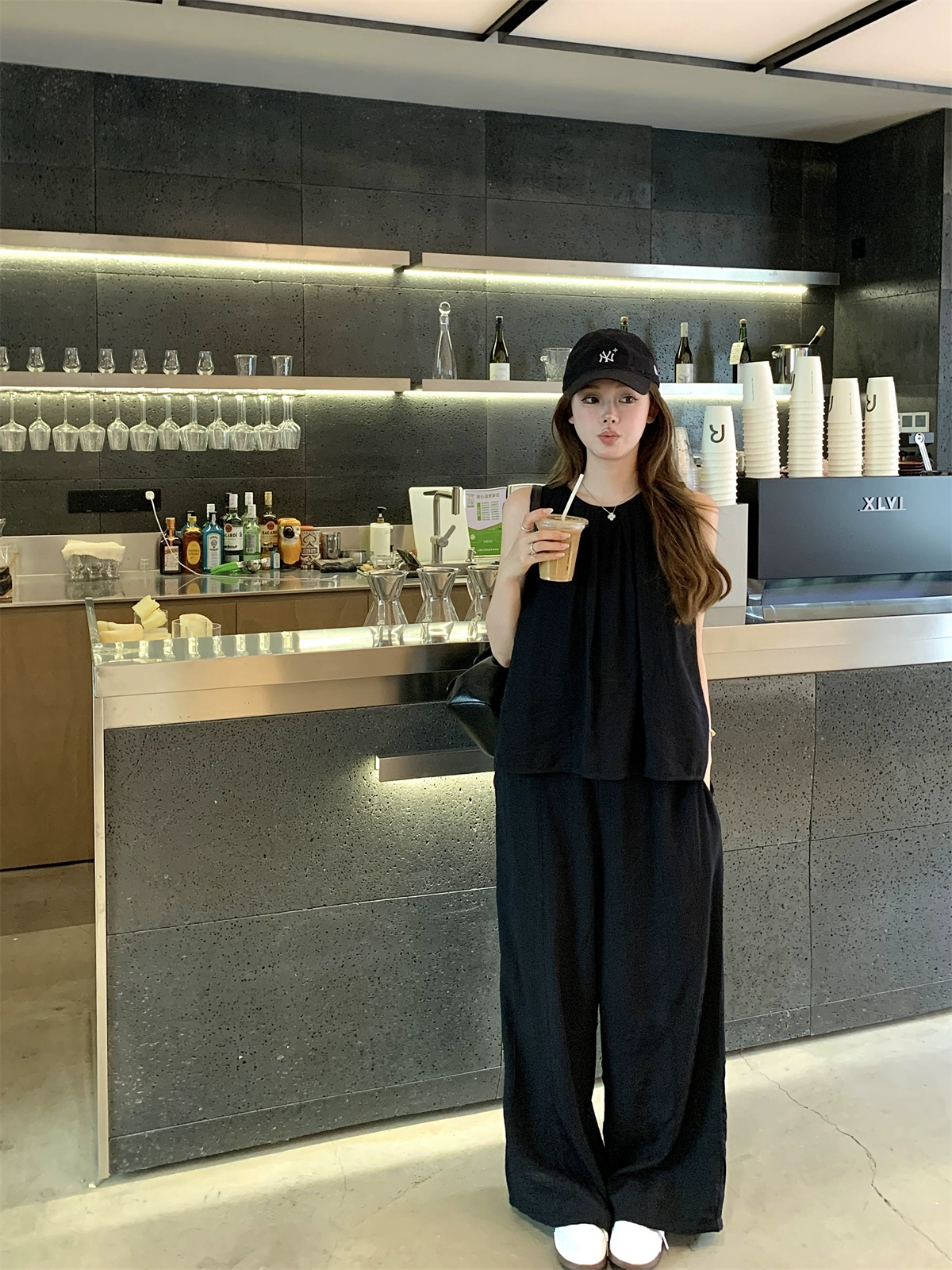 | nameOriginal | Korean fashion suit for women summer 2024 new shoulder strap sleeveless top high waist slimming wide leg trousers two-piece set |